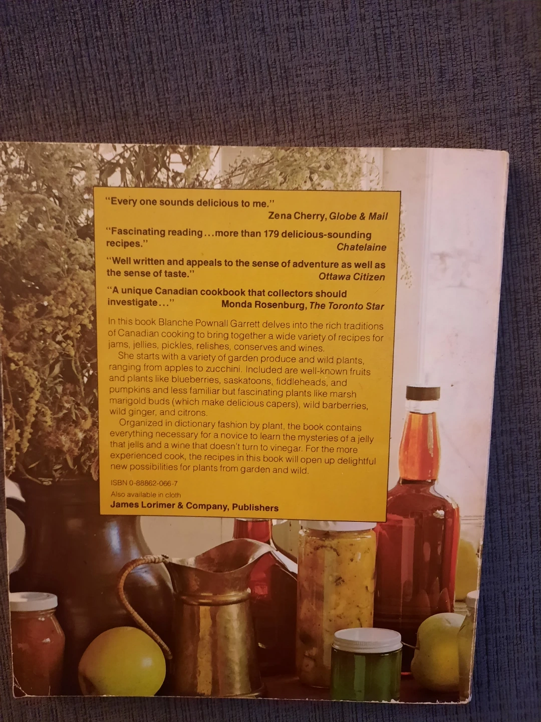 is a cookbook that focuses on recipes and methods for creating various preserves (such as jams, jellies, pickles, and conserves) and wines, likely using ingredients common in the Canadian countryside.