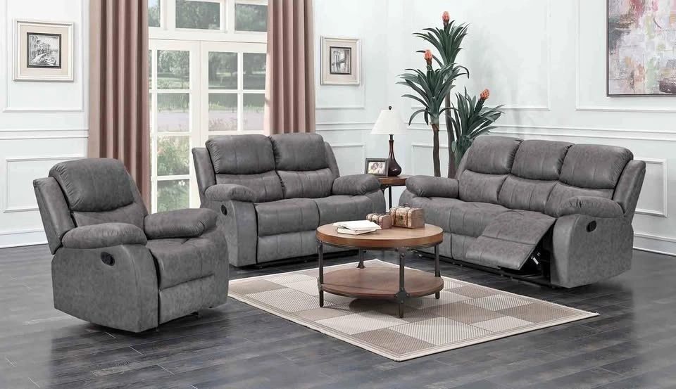 Brand new set available in 3 colors: Black, Gray, and Brown. Includes couch, love seat, and rocking recliner chair. Feel free to message if you have any questions!