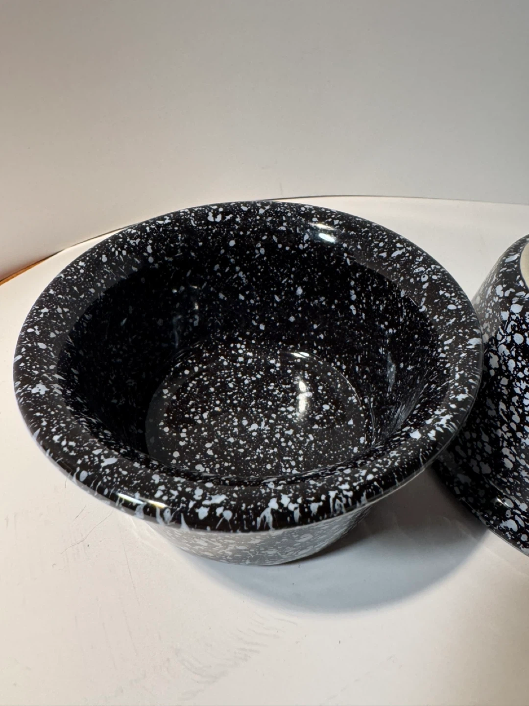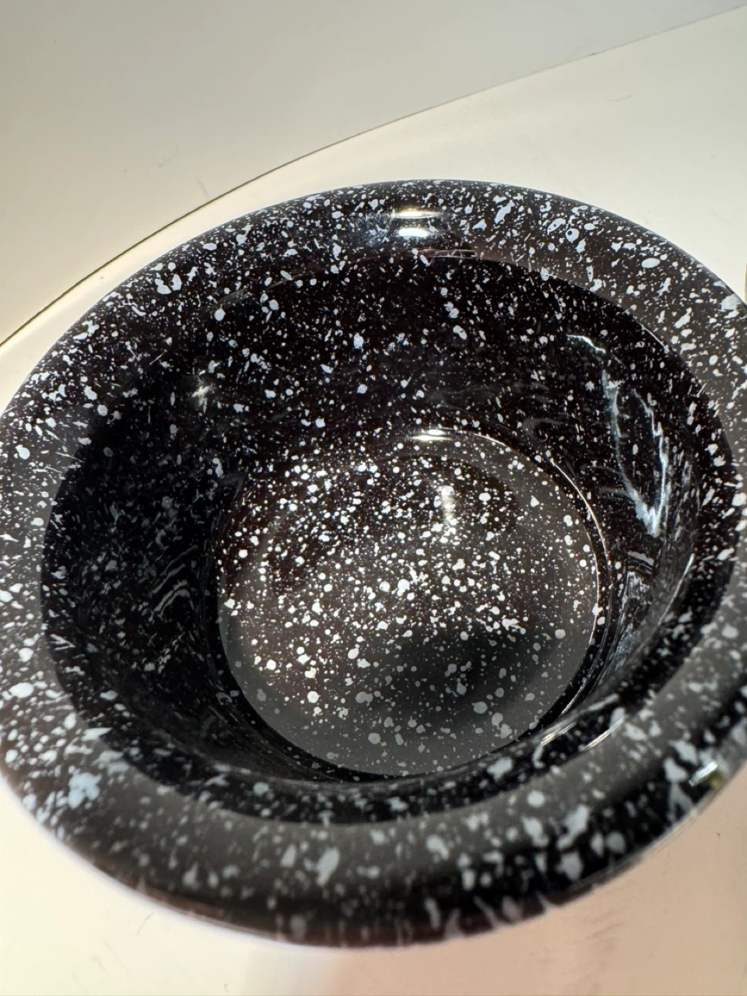 Color/Pattern: A black base with white speckles, often referred to as graniteware style in similar products.
