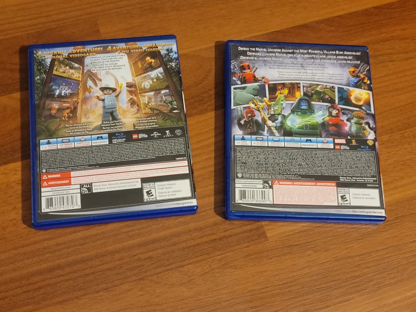 Up for sale are two LEGO games for the PS4: LEGO Jurassic World and LEGO Marvel Super Heroes. Both games are in great shape and ready for hours of brick-filled fun! As these are used games, they may have minor wear, but nothing that affects gameplay.