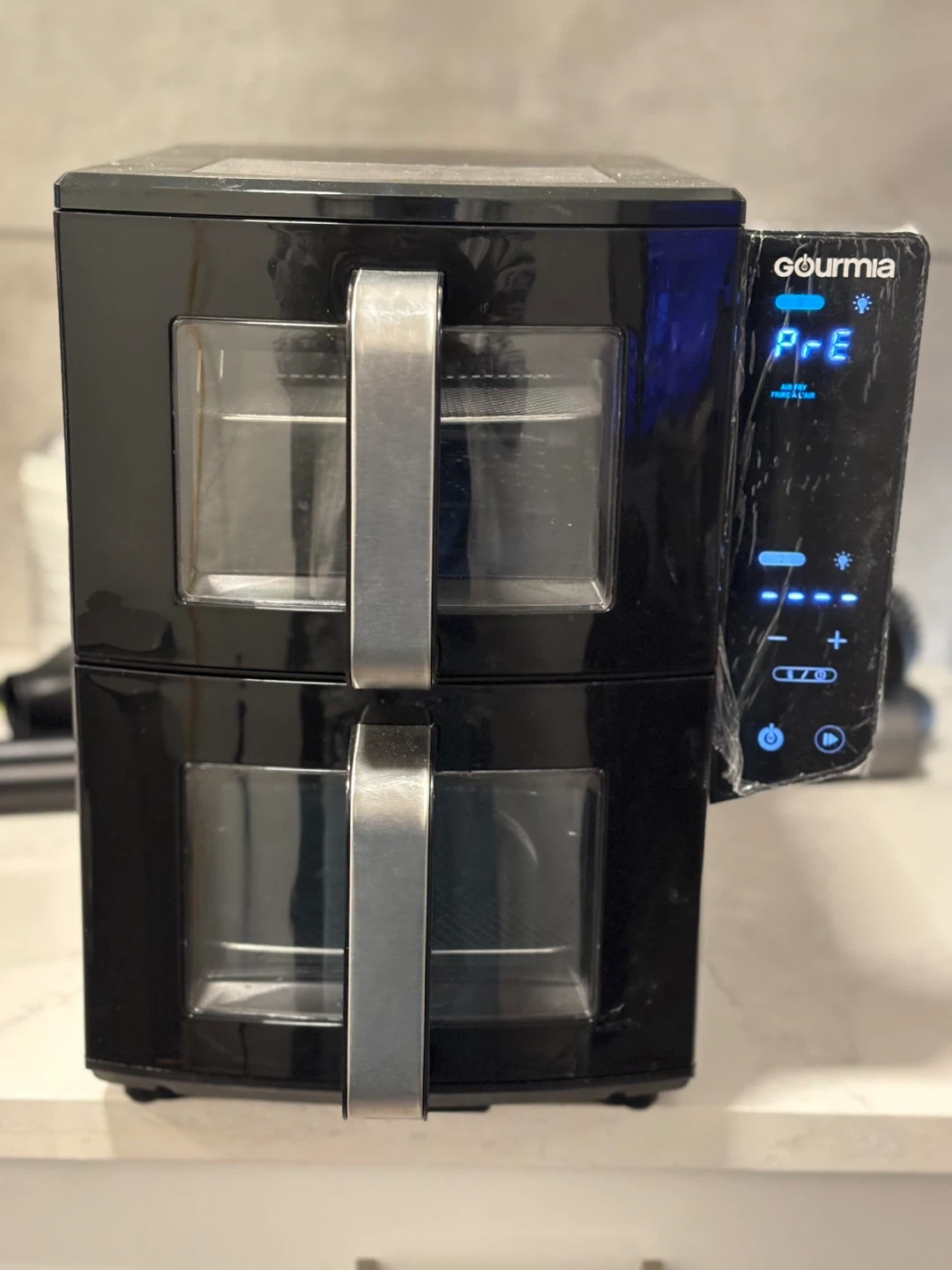 Selling a Gourmia double basket air fryer! It's in great condition and perfect for cooking multiple things at once. It's black and has two separate baskets for convenience