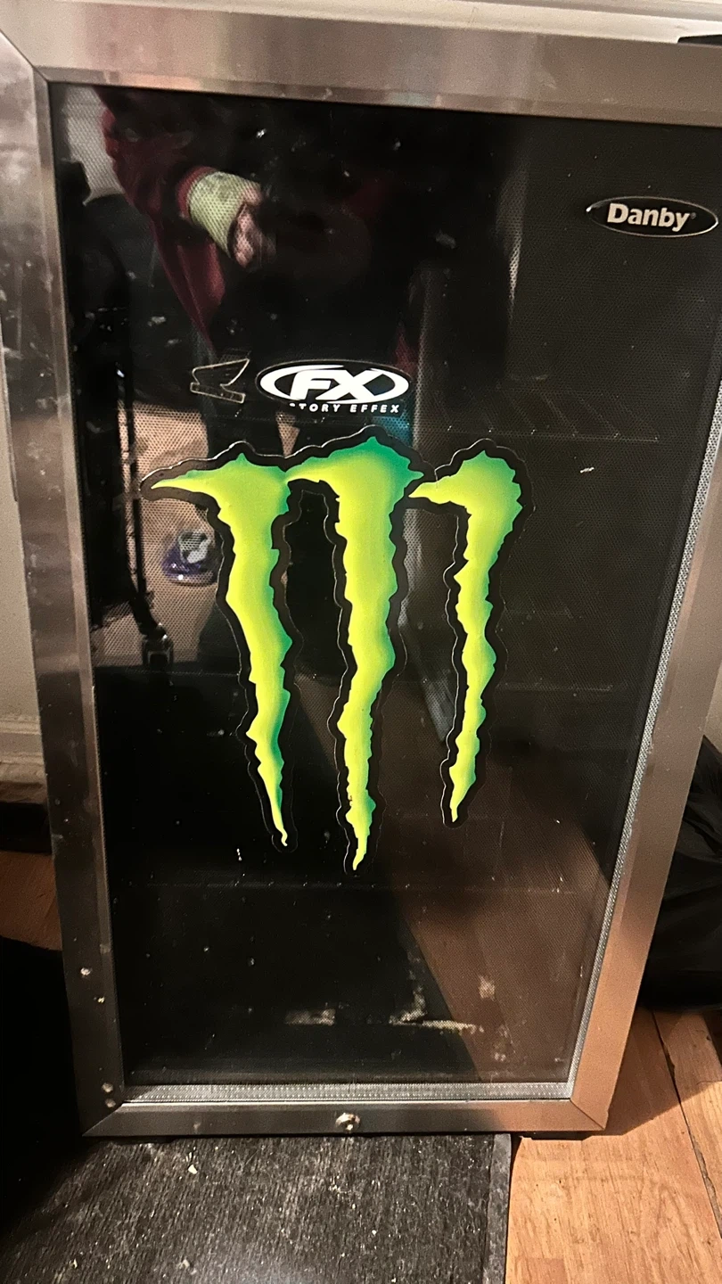 Selling a Danby beverage fridge. It has a custom Monster Energy decal on the front. It's perfect for keeping drinks cold and has interior shelving to organize your beverages. It's in good working condition and ready to use!