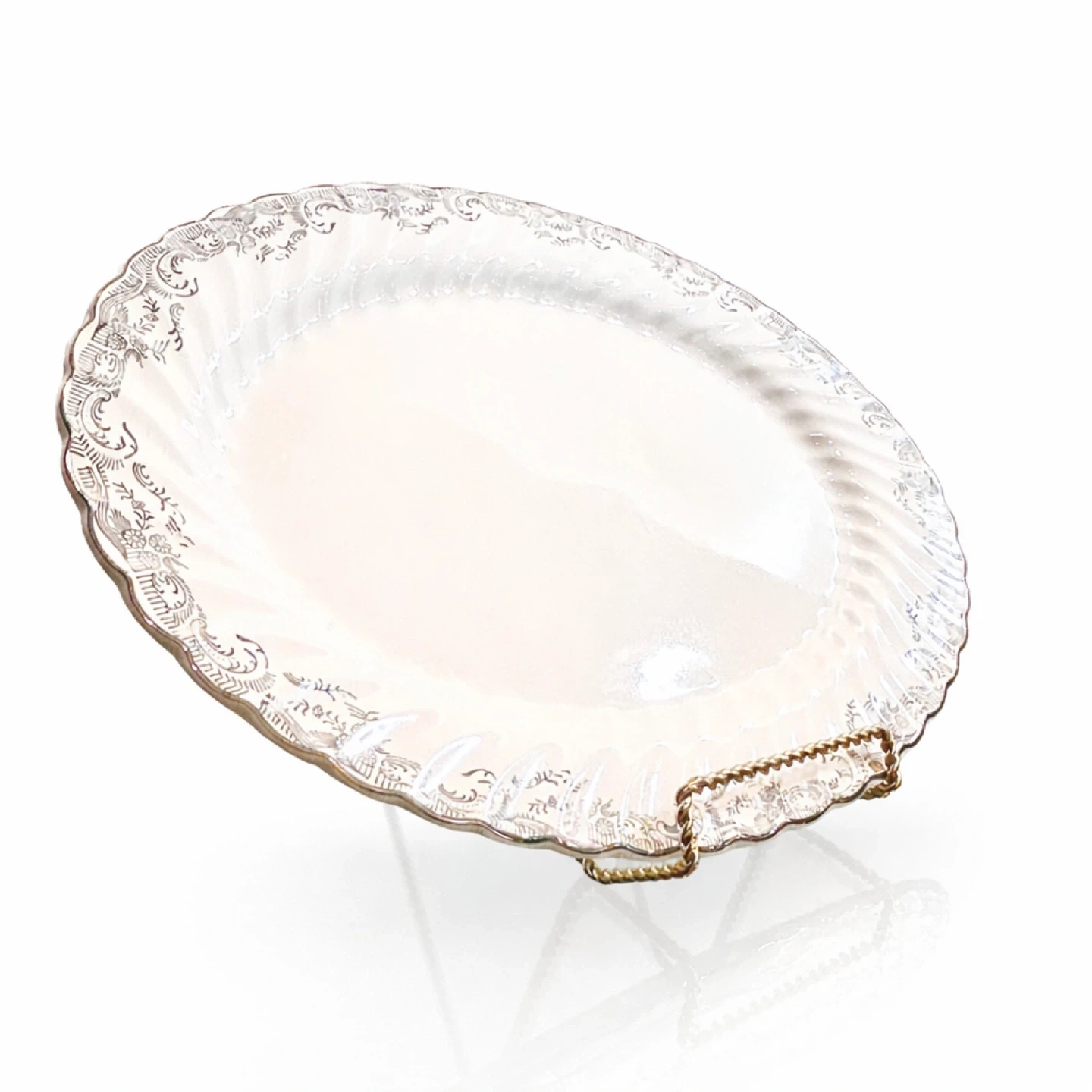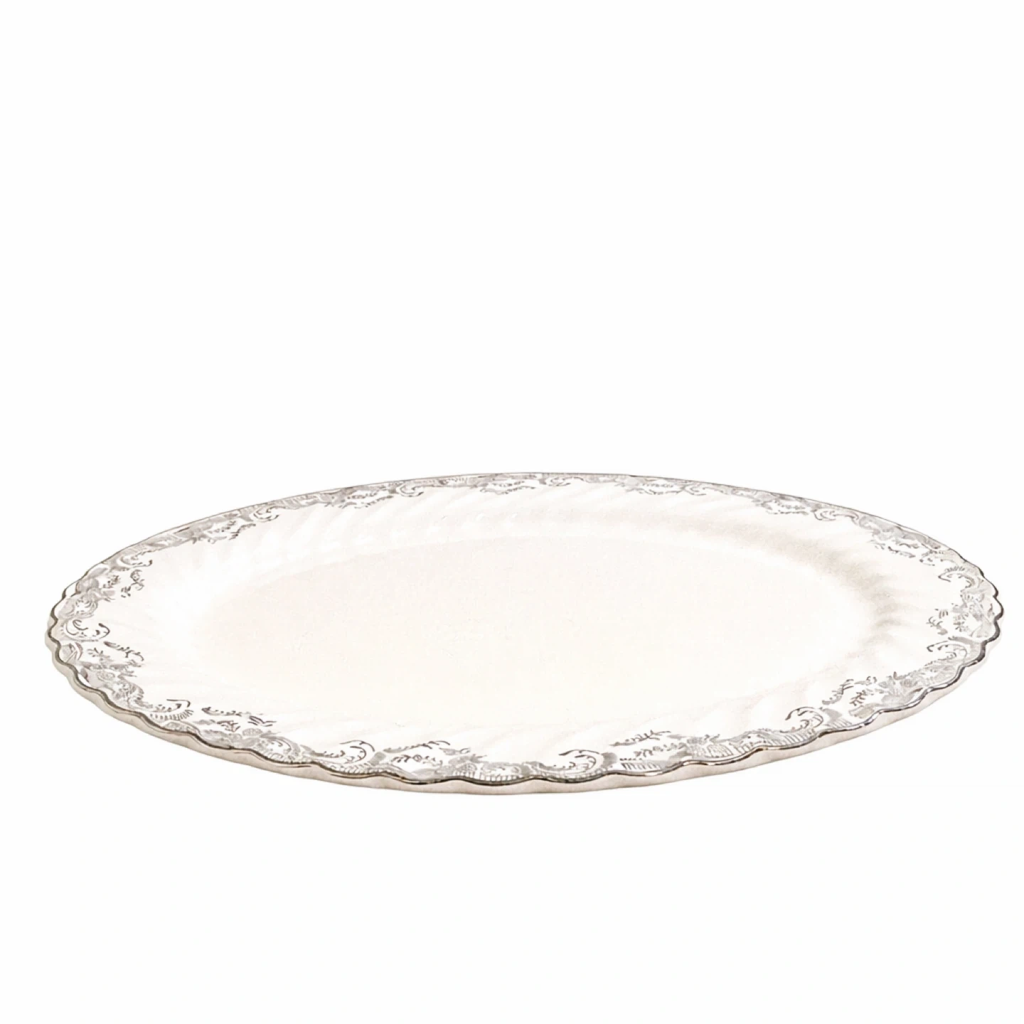 • Form: Oval platter with gently scalloped edge and subtly molded surface, giving depth and light play without overpowering the table.