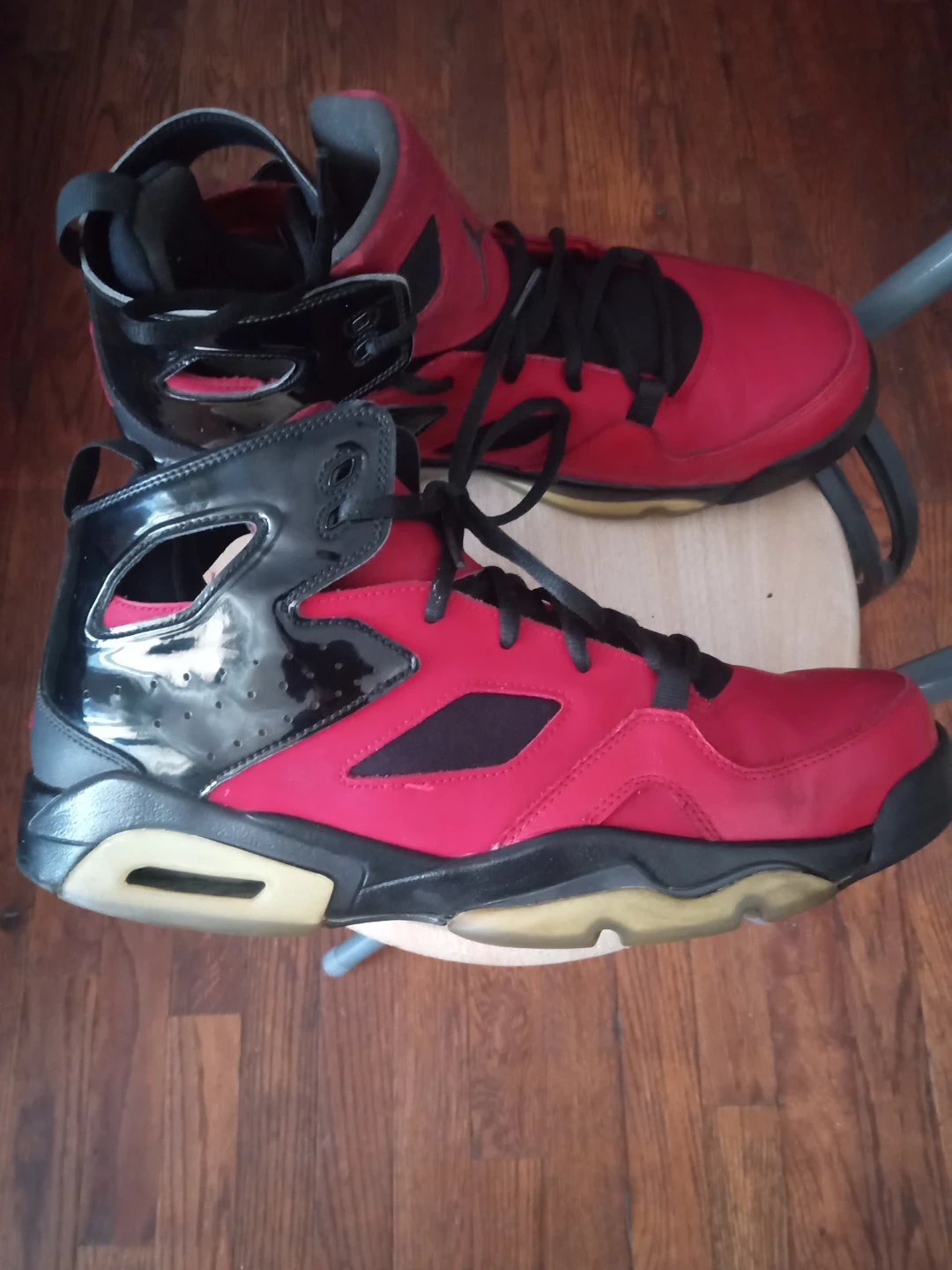 Selling a pair of Jordan Flight 45 High sneakers in red and black. They are in good condition and size 11 US.