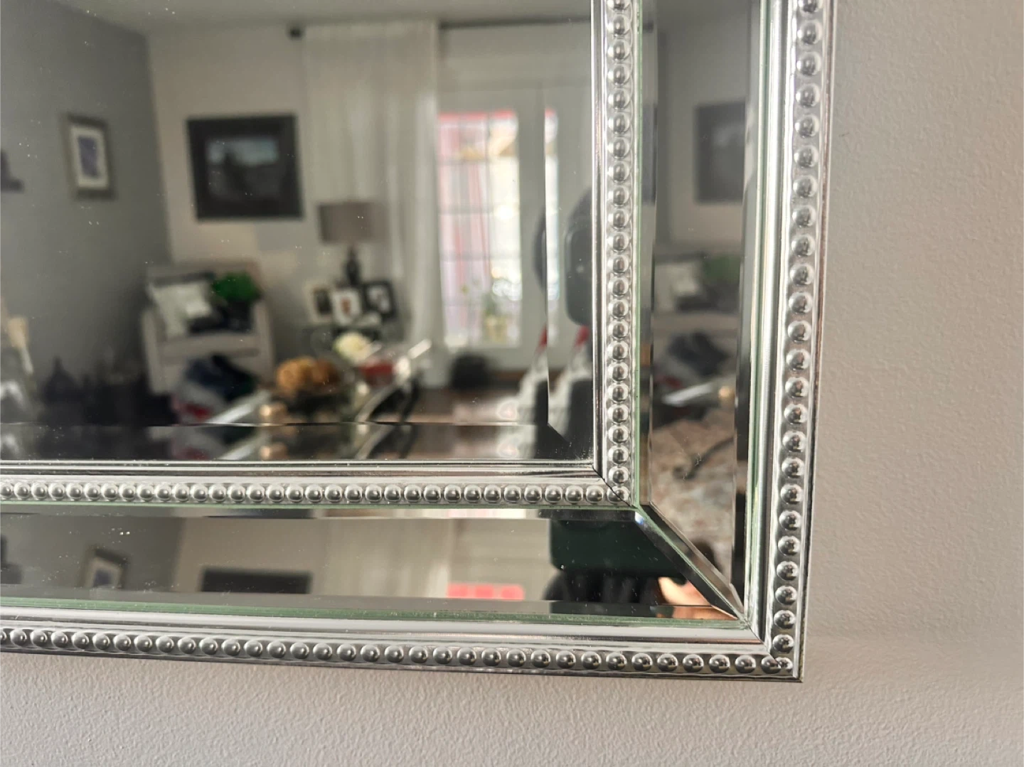 Selling a lovely beaded rectangular wall mirror! It's in great condition and would look beautiful in any room. The beaded detailing adds a touch of elegance