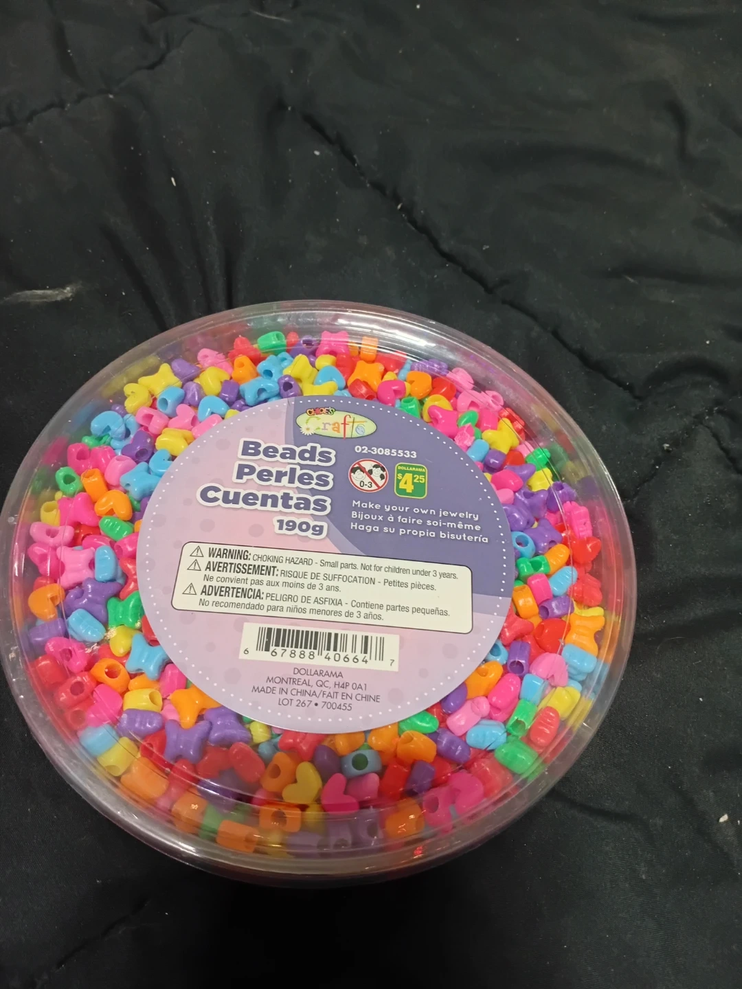 Get creative with these fun Children's Craft Beads! Perfect for making your own jewelry. Contains small parts, so it's not recommended for children under 3 years. Originally from Dollarama for $4.25.