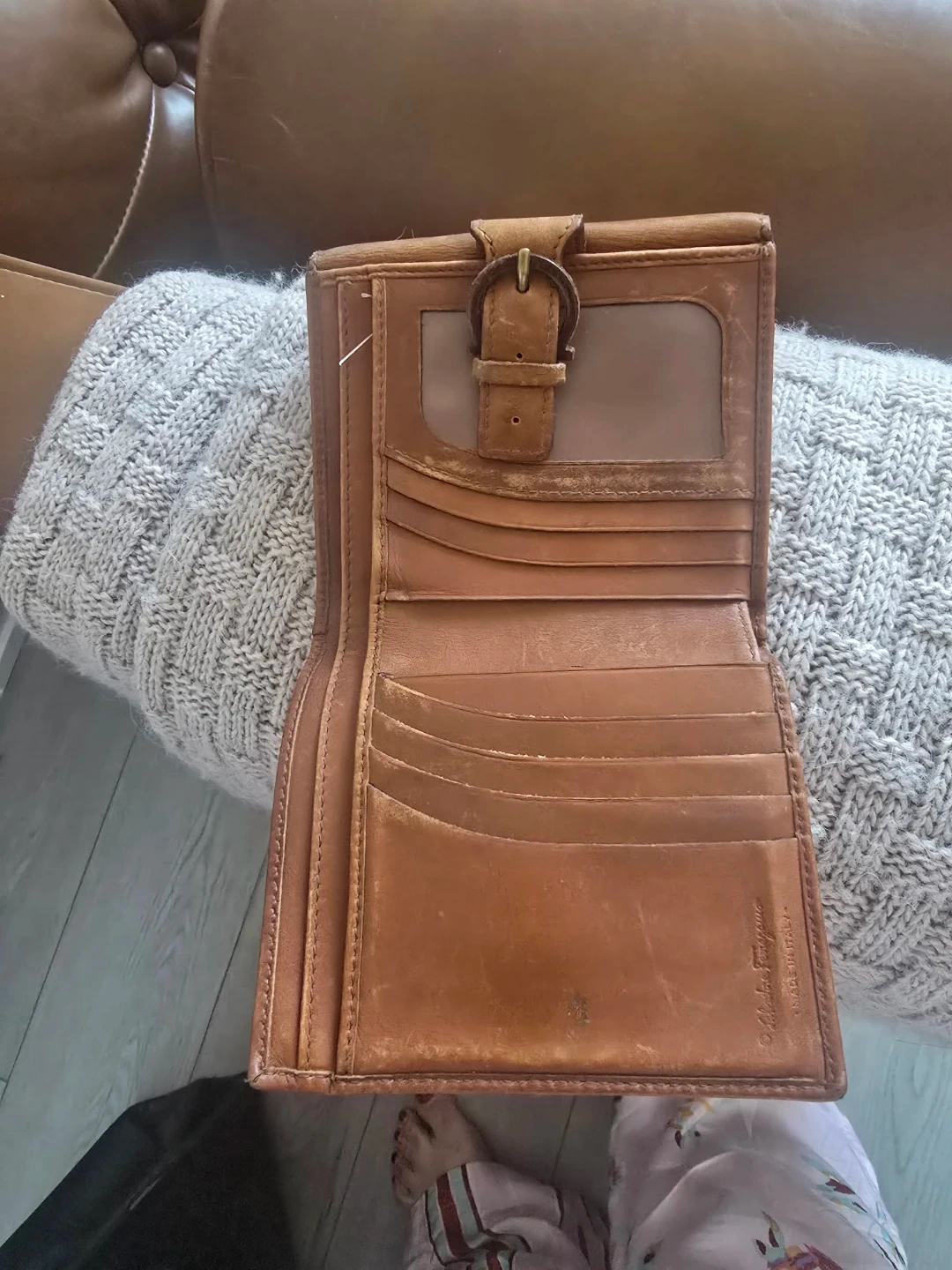 Selling a gently used Salvatore Ferragamo leather wallet. It's a stylish and functional accessory with a classic design. It shows some signs of wear, but still has plenty of life left!