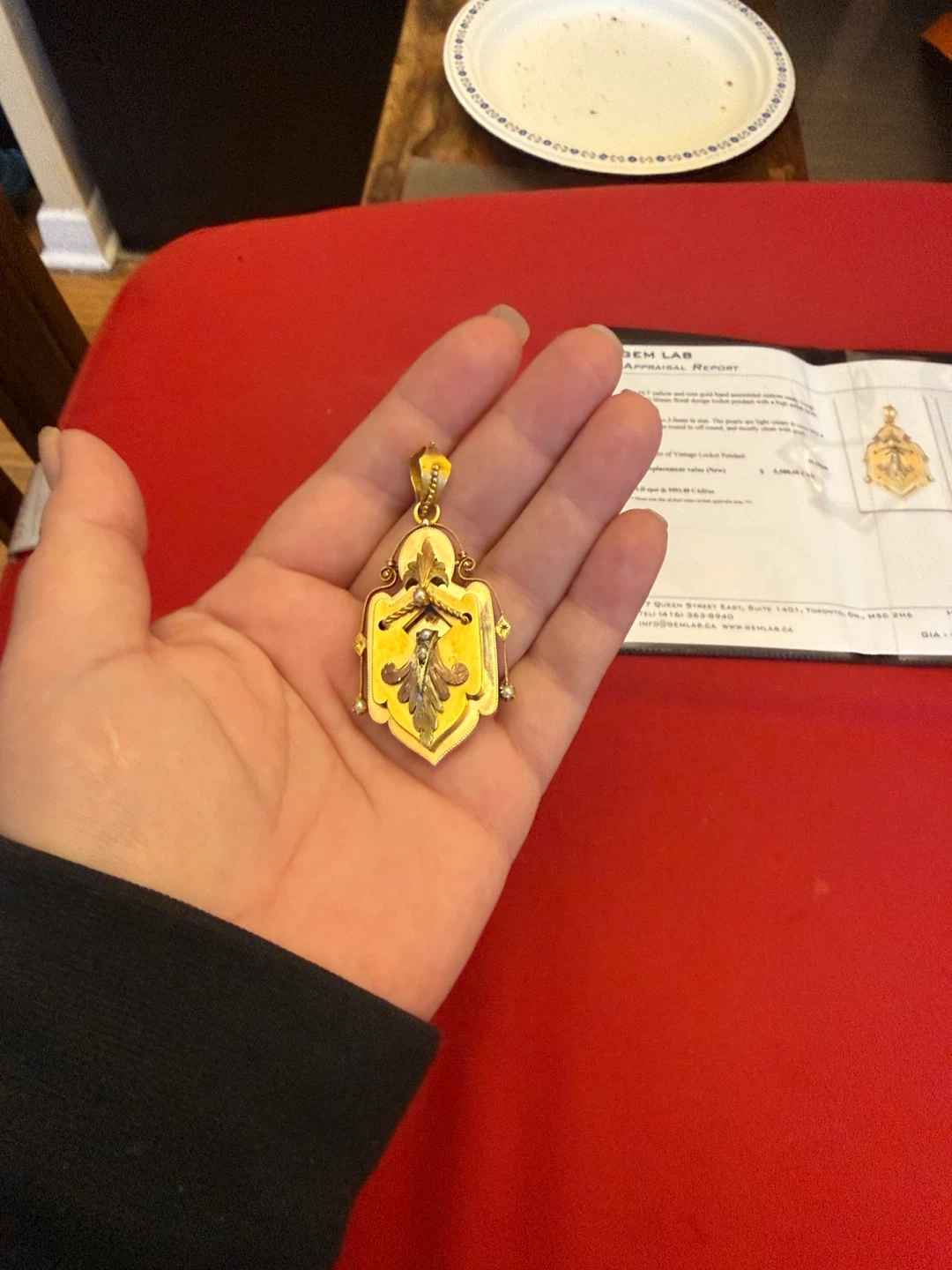 Beautiful Victorian 14KT yellow and rose gold hand assembled custom made locket pendant. The pendant features a floral design and has dimensions of approximately 53.50 x 30.00mm.