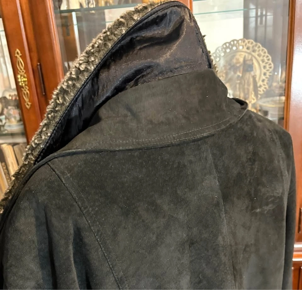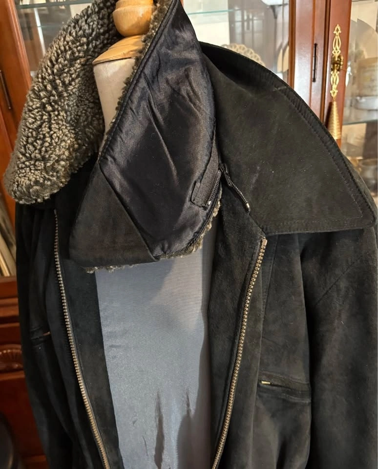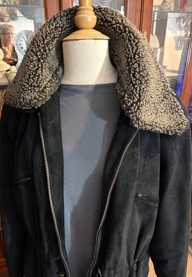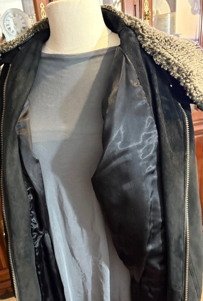 DANIER Leather Winter Coat - Black, Fur Collar, Size M