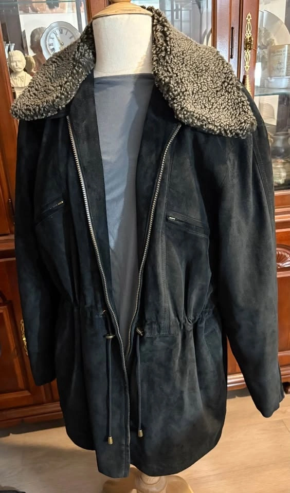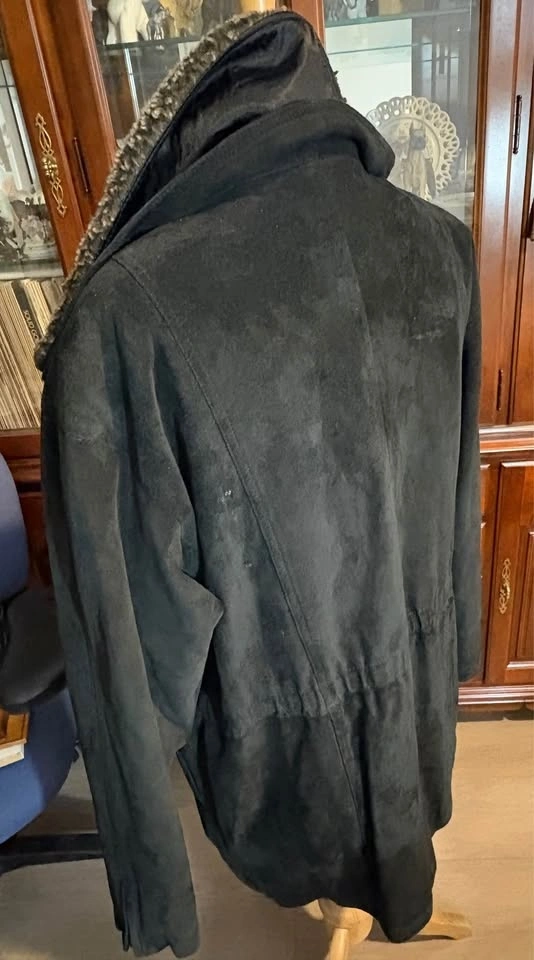 DANIER Leather Winter Coat - Black, Fur Collar, Size M
