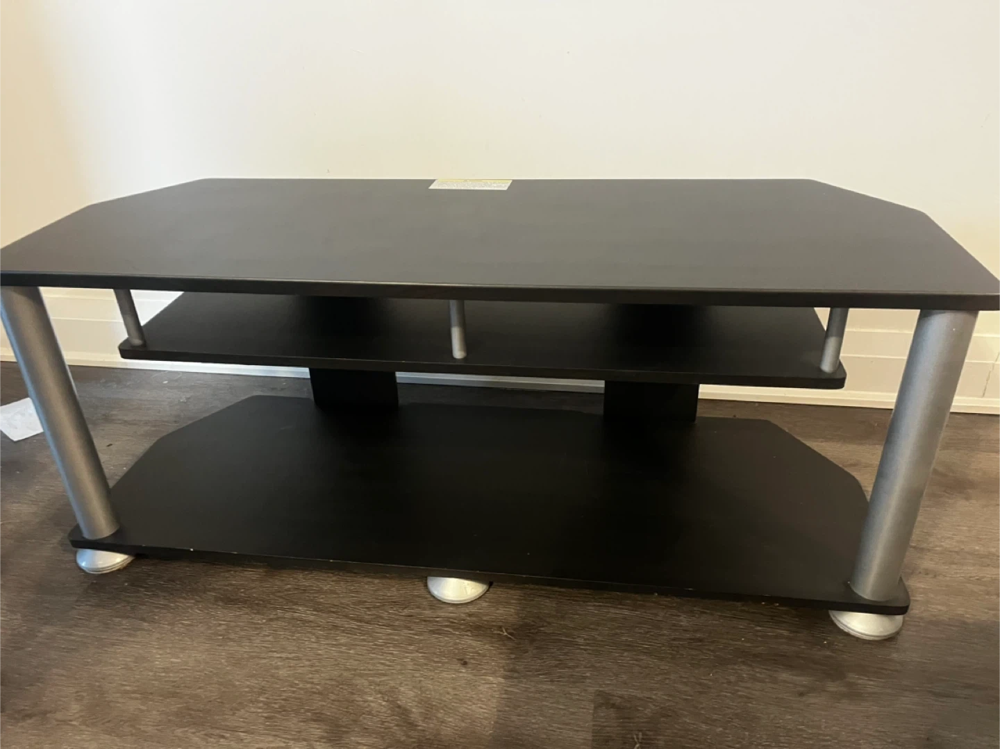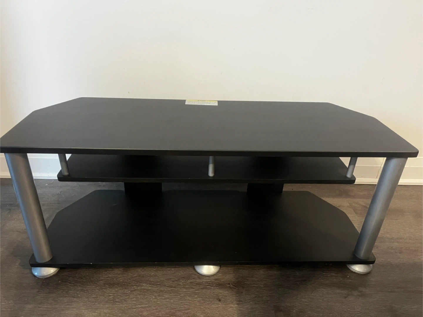 Selling a black TV stand that's perfect for your living room or entertainment area. Dimensions are 43 inch long by 17 inch tall by 16 inch wide.