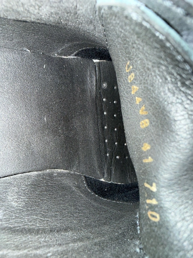 Step out in style with these Geox leather dress shoes, designed for both comfort and sophistication. In used condition, these shoes have been well-maintained and are ready for their next adventure. Perfect for the office or a night out, they offer a breathable sole and a sleek design.