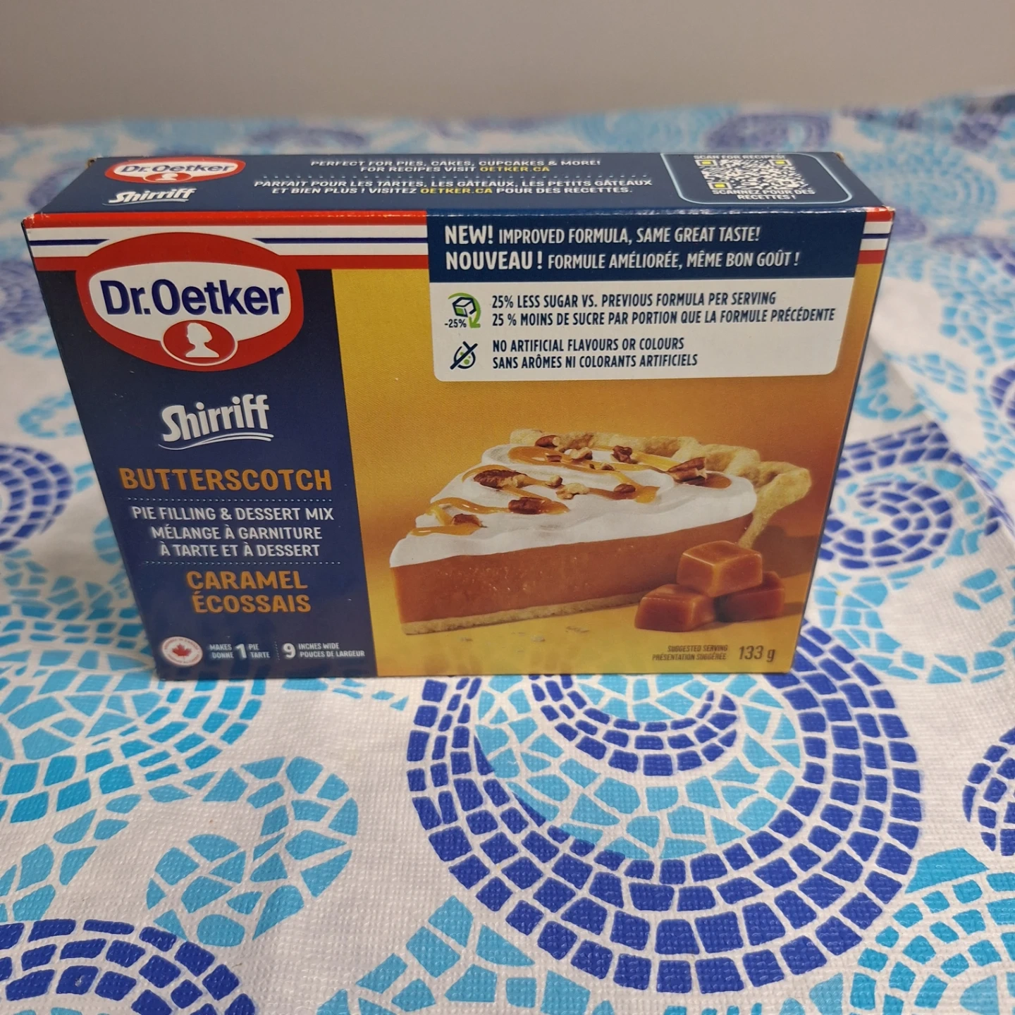 Selling Dr. Oetker Shirriff Vanilla Pie Filling & Dessert Mix. It's perfect for pies, cakes, cupcakes and more! The best before date is 2026 June 03. It has a new and improved formula with the same great taste! It also has 25% less sugar vs the previous formula per serving, and has no artificial flavours or colours