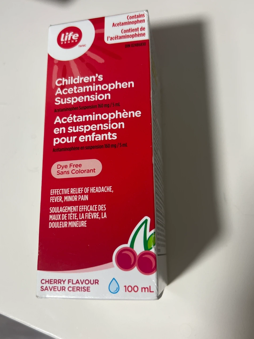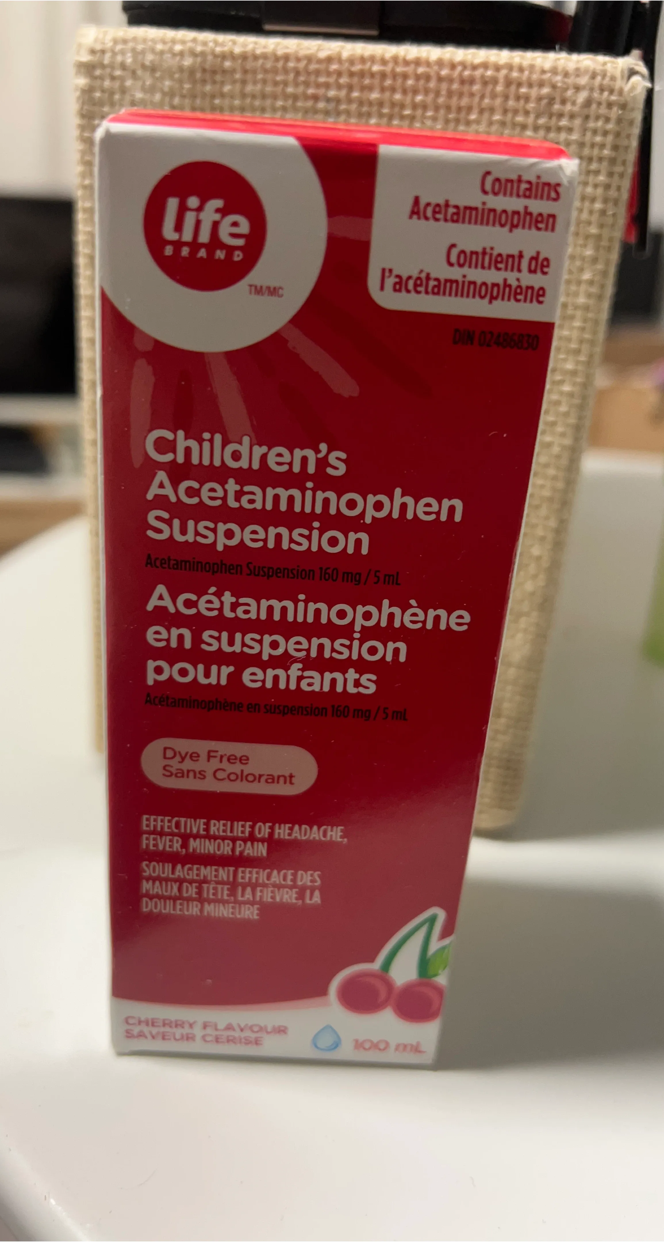 Life Brand Children's Acetaminophen Suspension. 100 ML.
