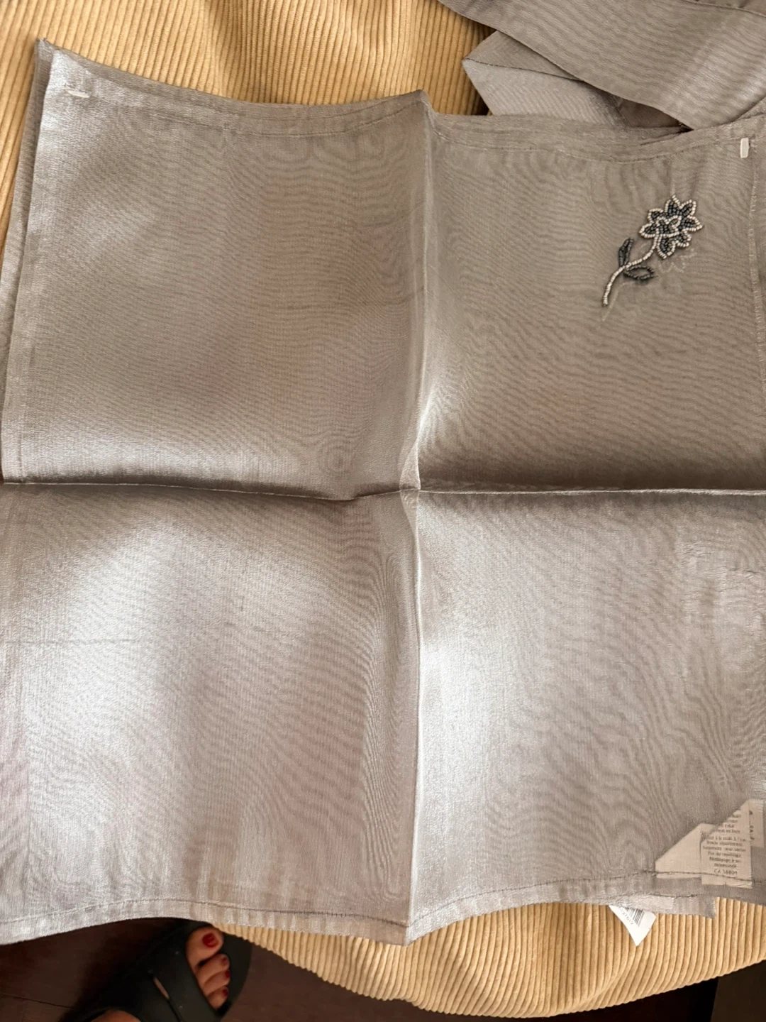 Selling a set of seven silver napkins with a delicate floral design. These would be perfect for adding a touch of elegance to your dining table. They are in great condition and ready for a new home