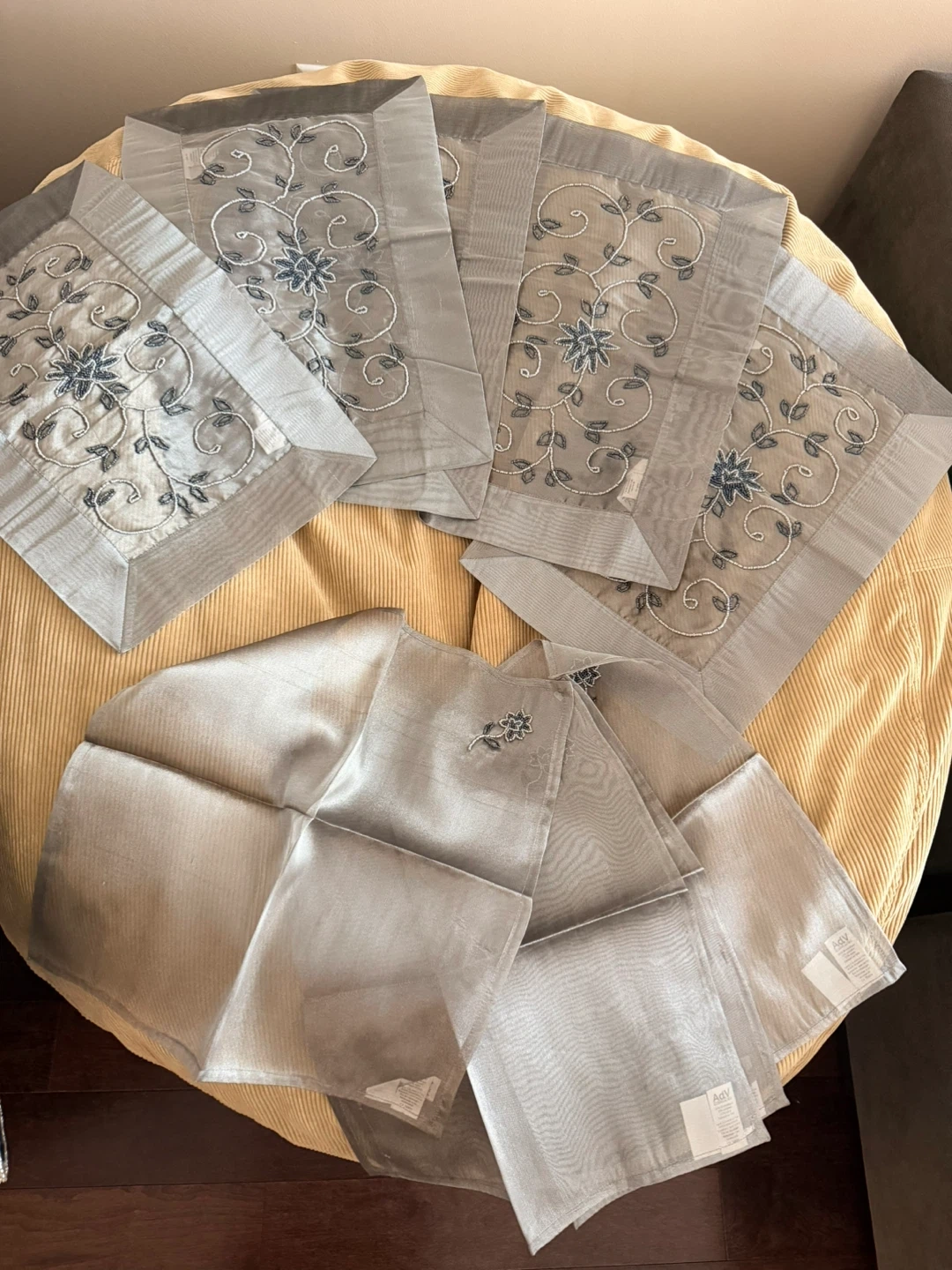 Set of 5 Silver beaded Floral Design Placemats, 4 Napkins🏆