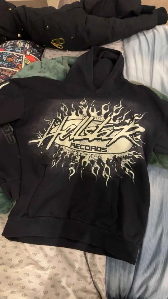 This is a 1:1 model Hellstar Records Future Flame hoodie. It has a fully scannable NFC chip.