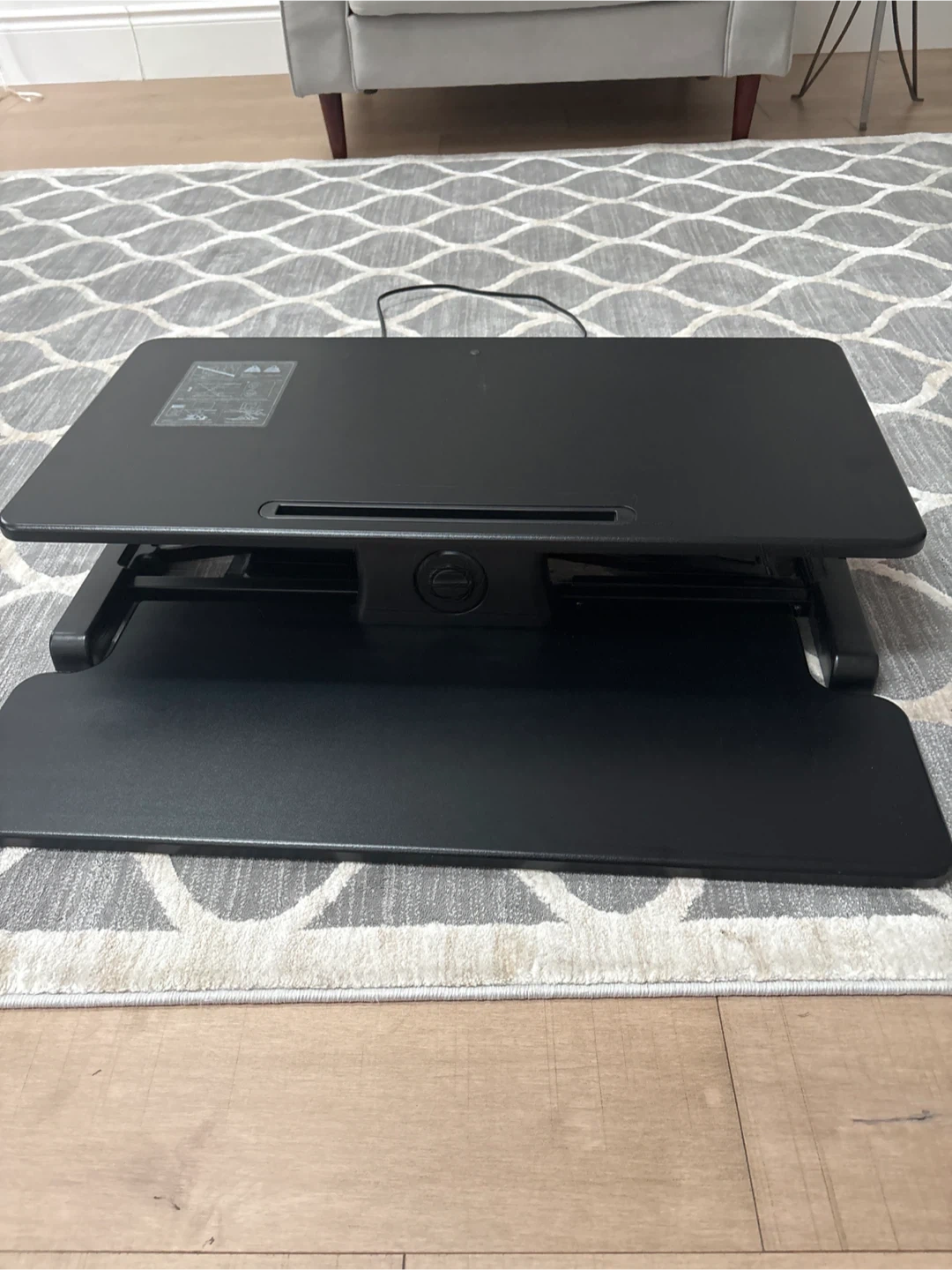 Selling a standing desk converter in black. It's in great condition and ready to help you switch up your work routine! It's perfect for creating a comfortable and ergonomic workspace at home or in the office