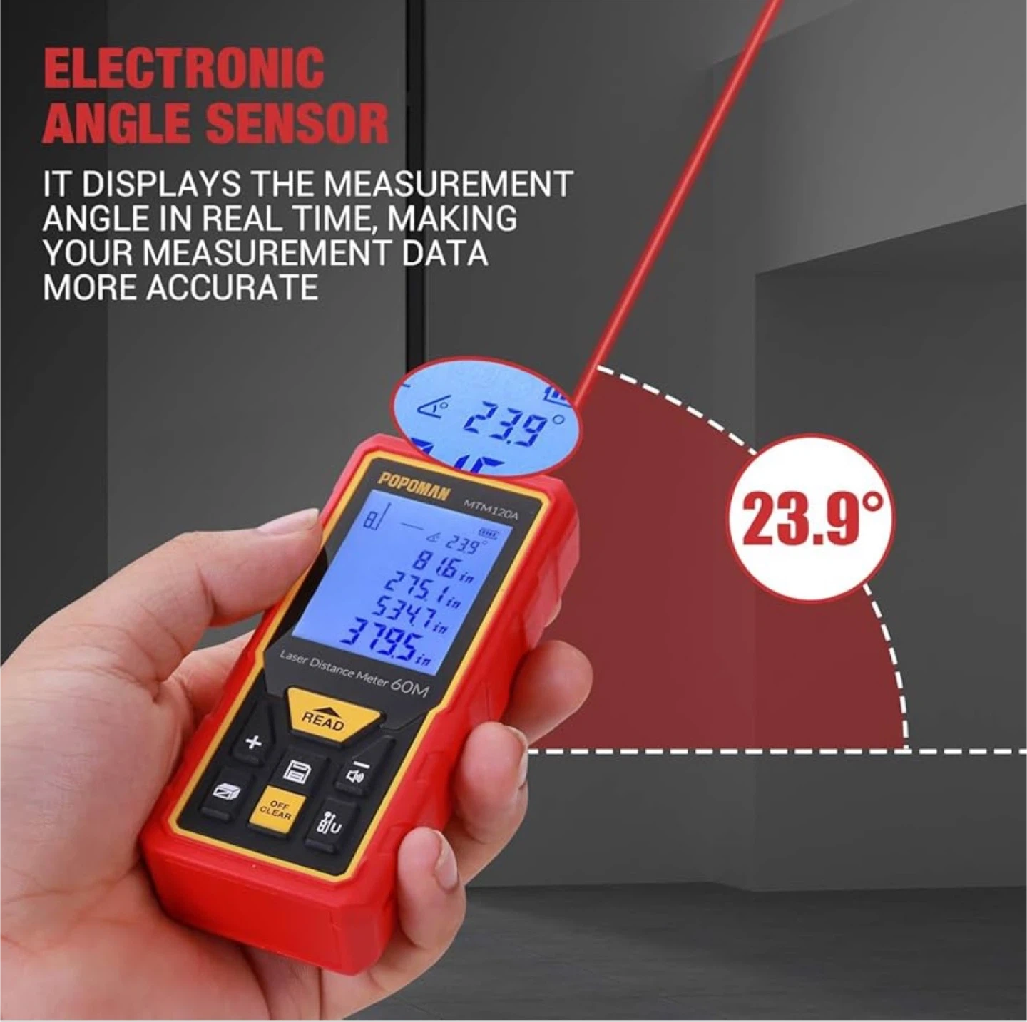 POPOMAN laser distance meter with electronic angle sensor for accurate measurements.