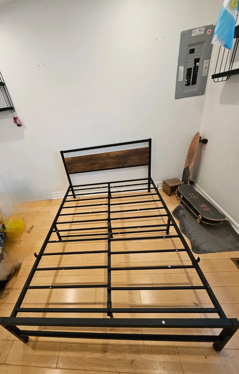Selling a sturdy double sized metal bed frame with a stylish wood headboard. It's in great shape and ready for a new home! Pick up only in the Vaughan nad Oakwood area.