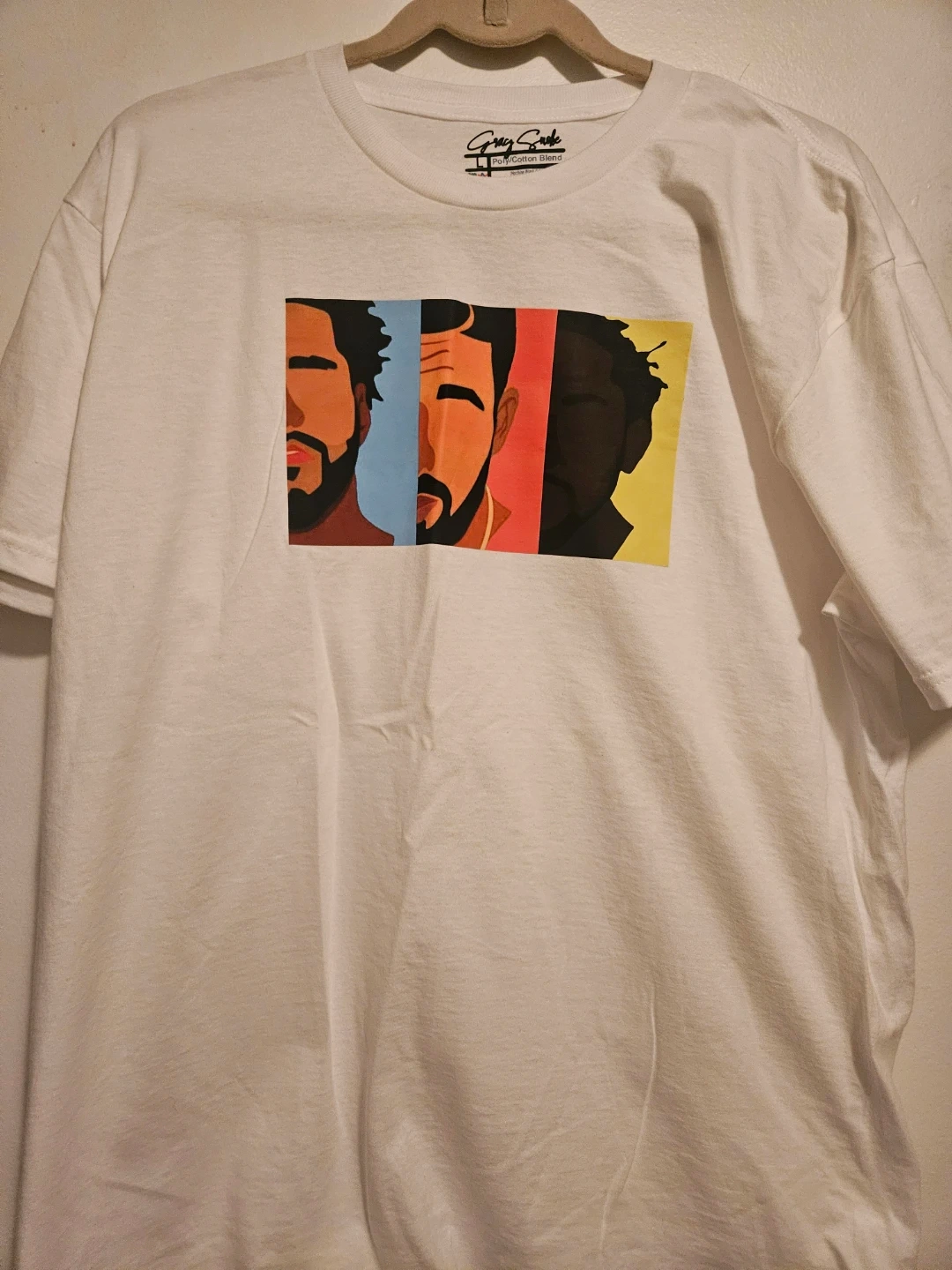This brand new Drake, J. Cole, and Kendrick Lamar graphic tee is a must-have for any hip-hop fan, featuring a unique design on a comfortable poly/cotton blend. It's a size large. The T-shirt is in perfect condition.