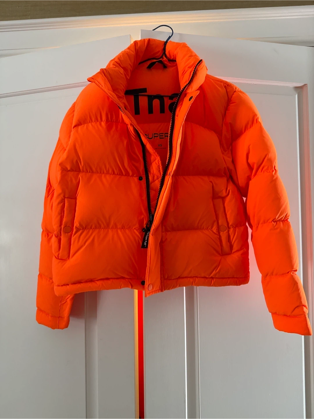 Selling a TNA The Super Puff™ in size XS. The colour is a vibrant orange. It's in great condition and ready to keep you warm!