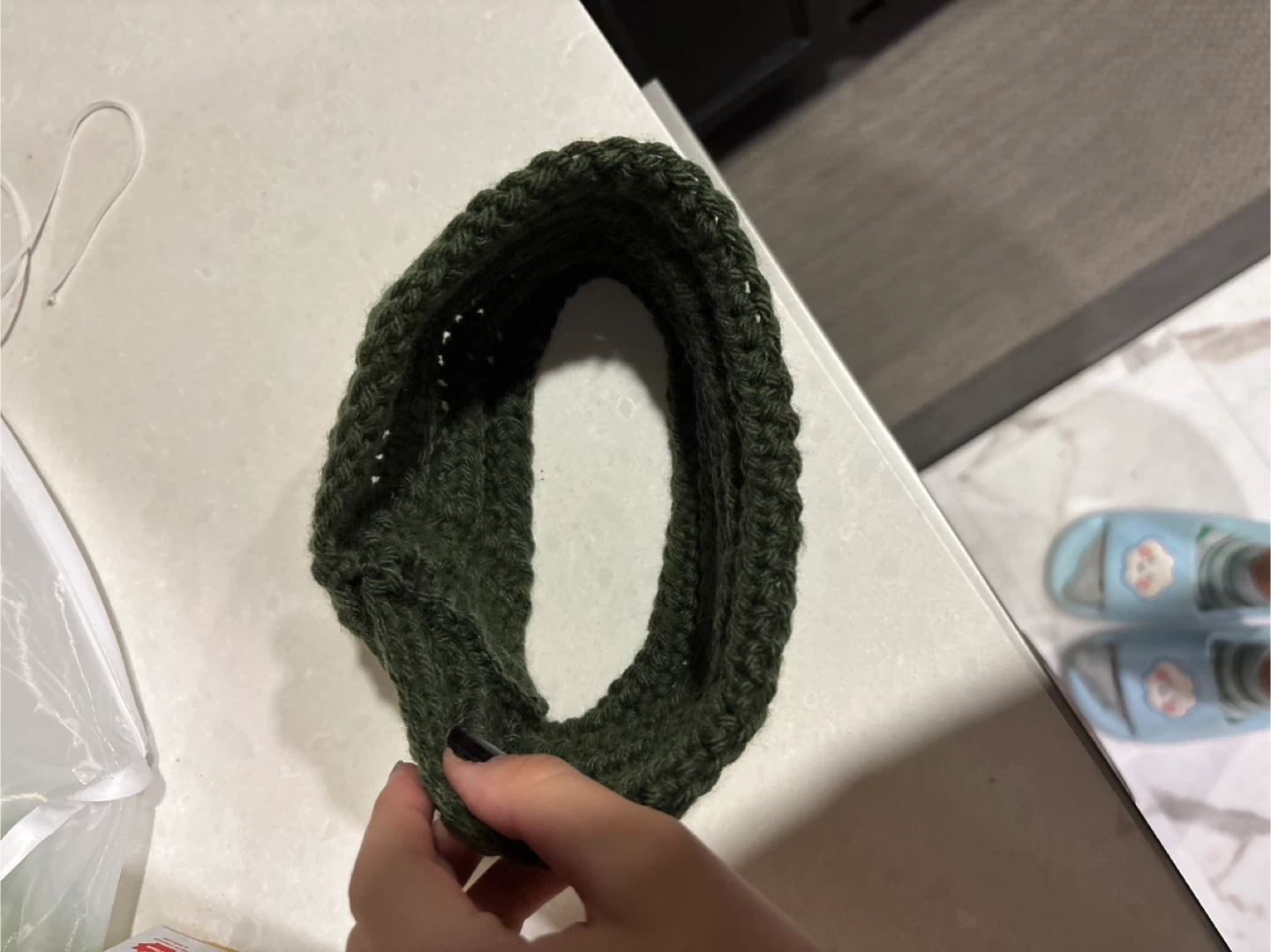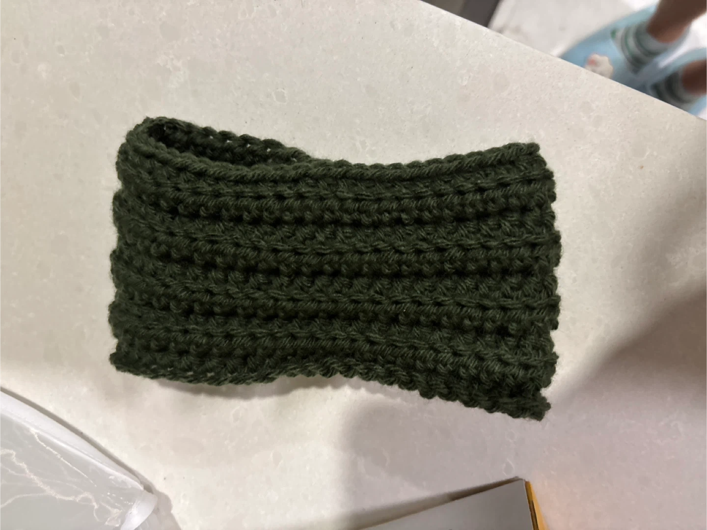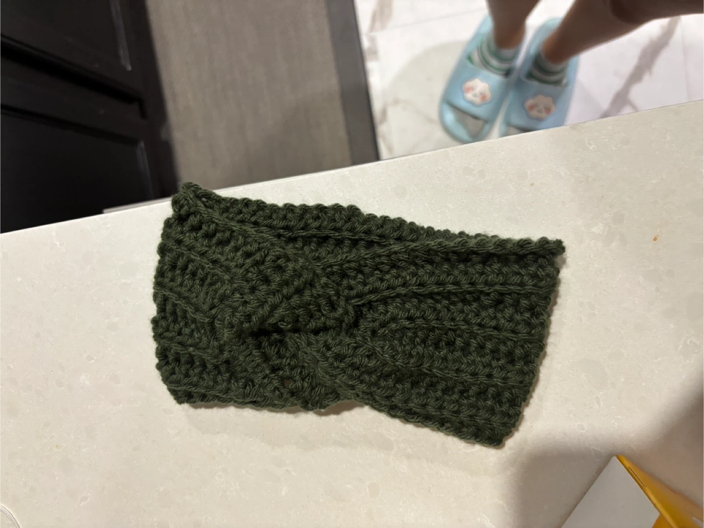 Selling a handmade knitted headband in a lovely olive green colour. It's perfect for keeping your hair back or adding a touch of warmth on cooler days. The material is soft and comfortable, making it a cozy accessory!