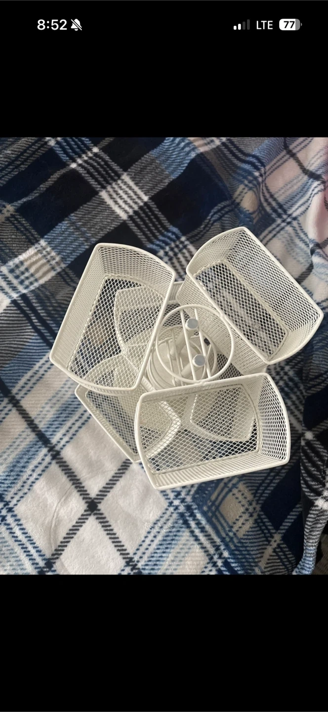 Here's a white mesh desk organizer to keep your space tidy! It has multiple compartments to sort your supplies or stationery. It's in great shape and ready for a new home pick up cash only