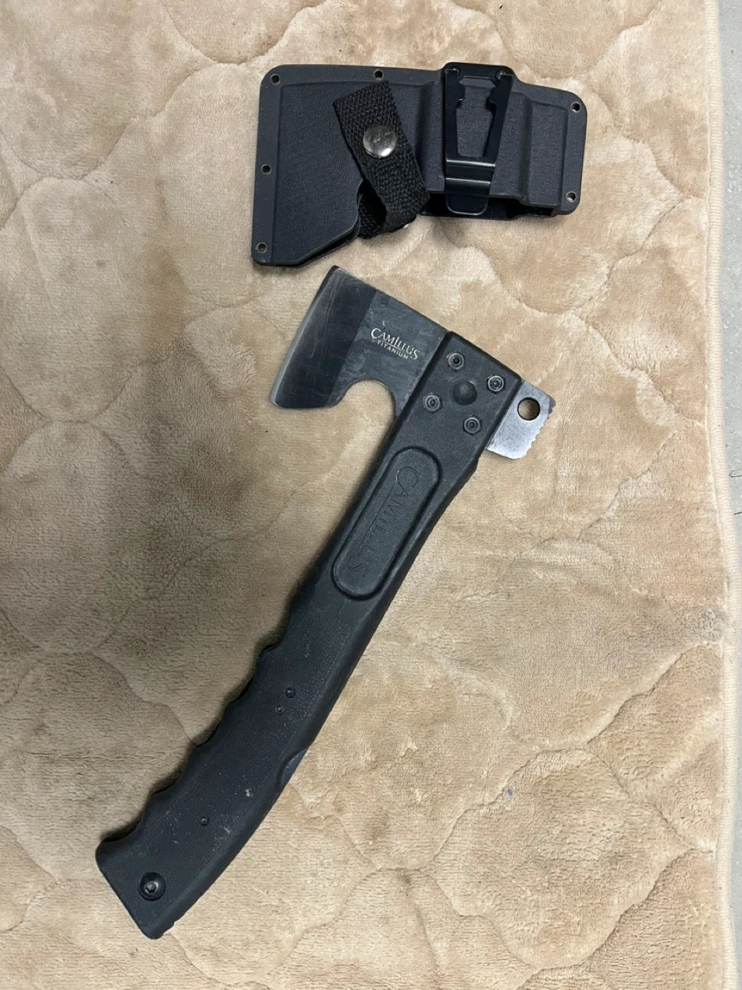 Selling a Camillus tomahawk axe. It comes with a sheath for safe storage and carry. Great for outdoor activities or adding to your collection! It's in good condition and ready for its next adventure