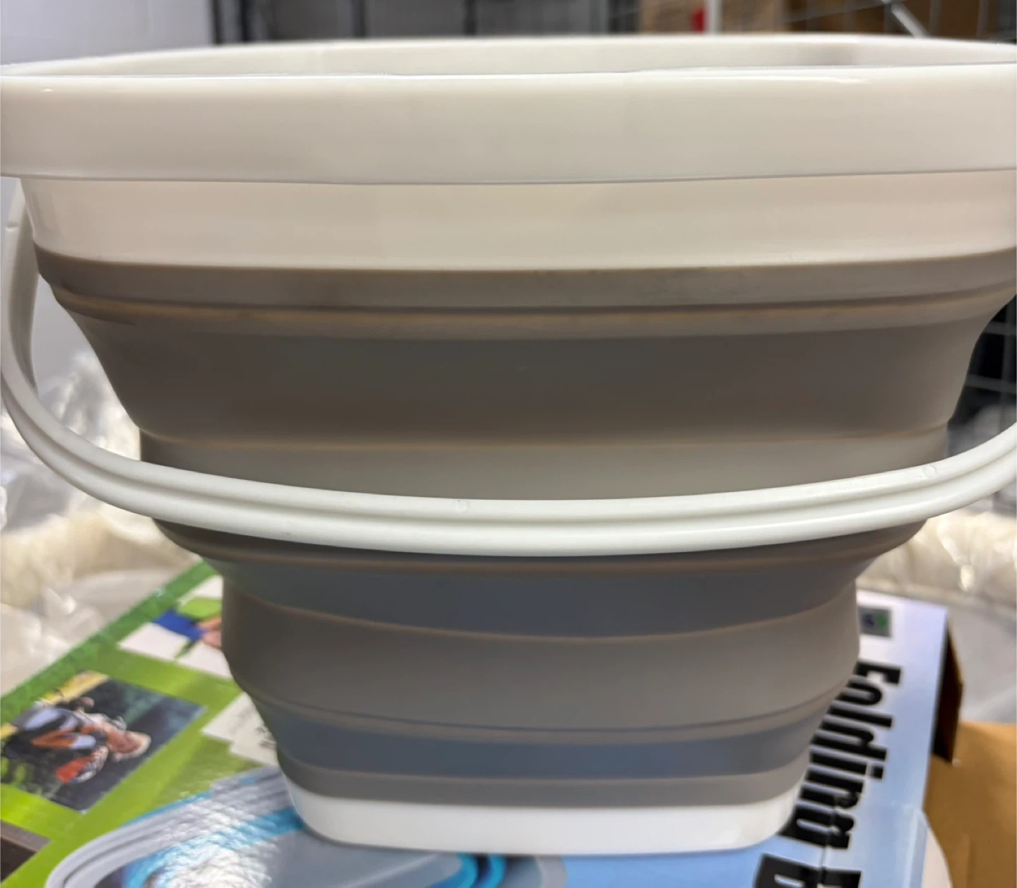 Brand new “Folding Bucket” 10L capacity, still sealed in original box. Collapses completely flat for storage and expands to full size in seconds – super practical for camping trips, car washes, laundry, gardening, or beach days. Sturdy handle and heat-resistant material (safe for hot water). Box shows green model but yours is grey/white version as pictured.