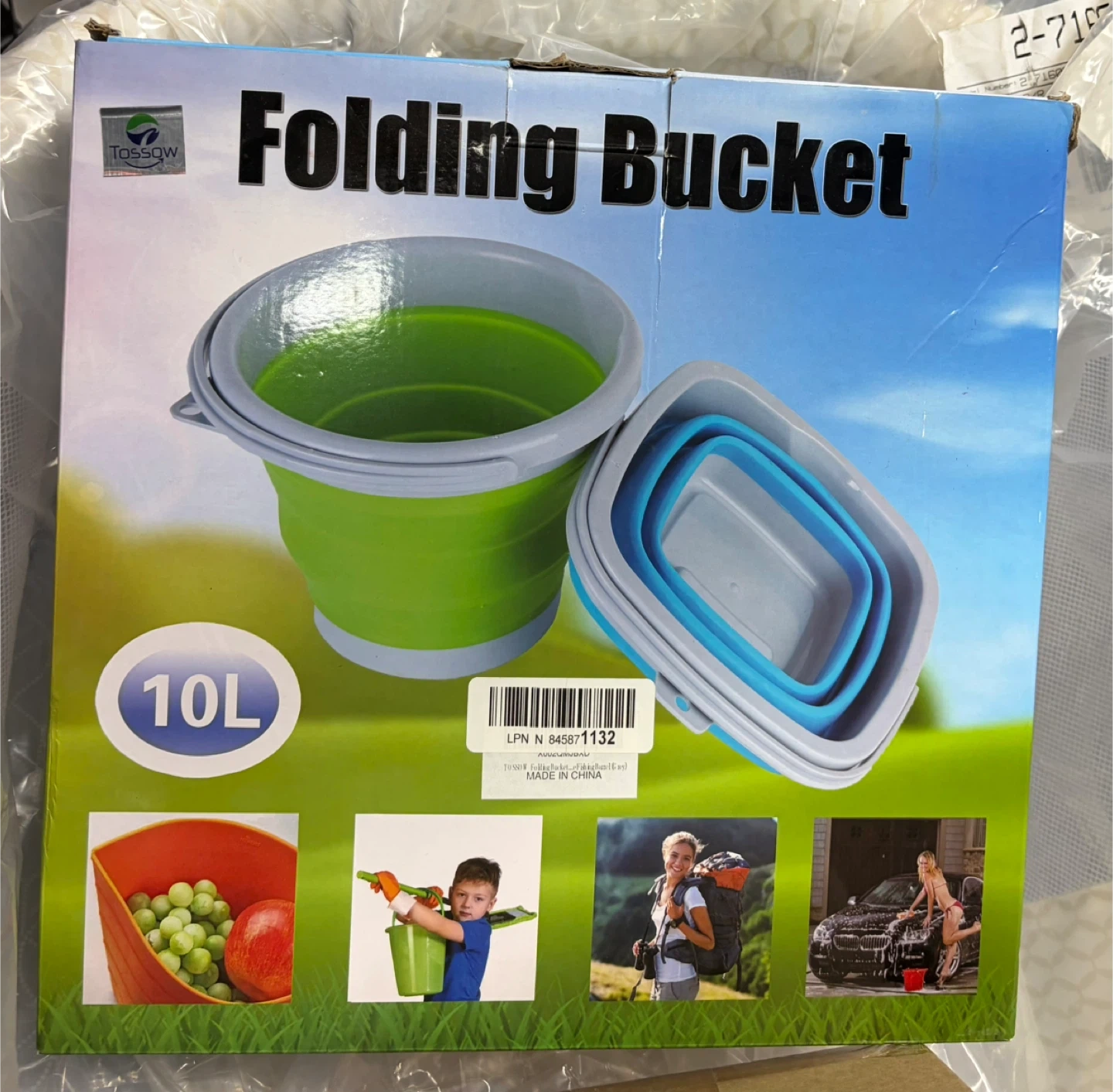 Brand new “Folding Bucket” 10L capacity, still sealed in original box. Collapses completely flat for storage and expands to full size in seconds – super practical for camping trips, car washes, laundry, gardening, or beach days. Sturdy handle and heat-resistant material (safe for hot water). Box shows green model but yours is grey/white version as pictured.