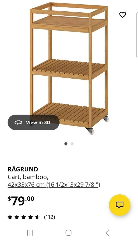 Ikea Bamboo 3-Shelf Cart, Moving Sale!!!!
