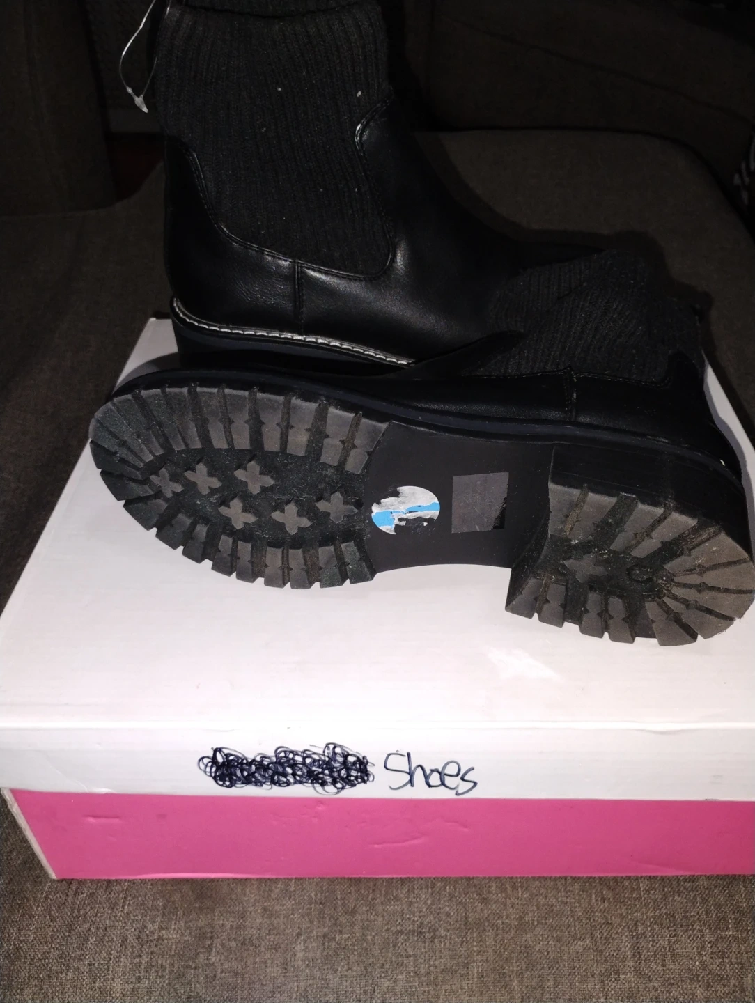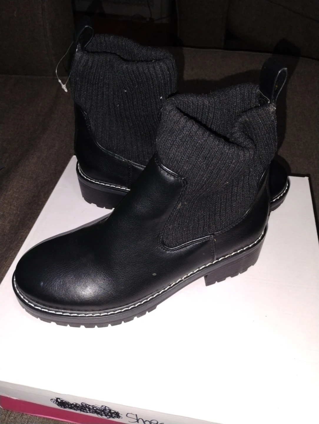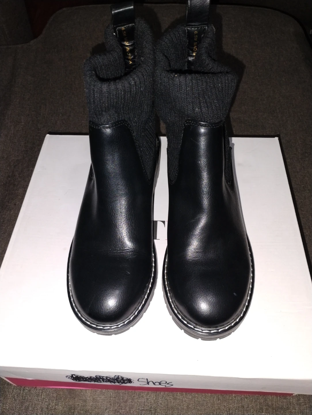 Buy & SellBlack Leather Boots womenBlack Leather Boots women$25These are a pair of black leather boots. They have a sock-like cuff at the top and a lug sole. Comes with box!great for winter time.ConditionNewSize7 WHERE TO MEETDunkin DonutsView MapSELLERverifiedRositaRidgewood80667 reviews1 chats·1 favorites·35 viewsSEND CHAT TO SELLERHi Rosita! I’m interested in your listing.Hi Rosita! I’m interested in your listing.Get the Karrot app to chatSign In to chat