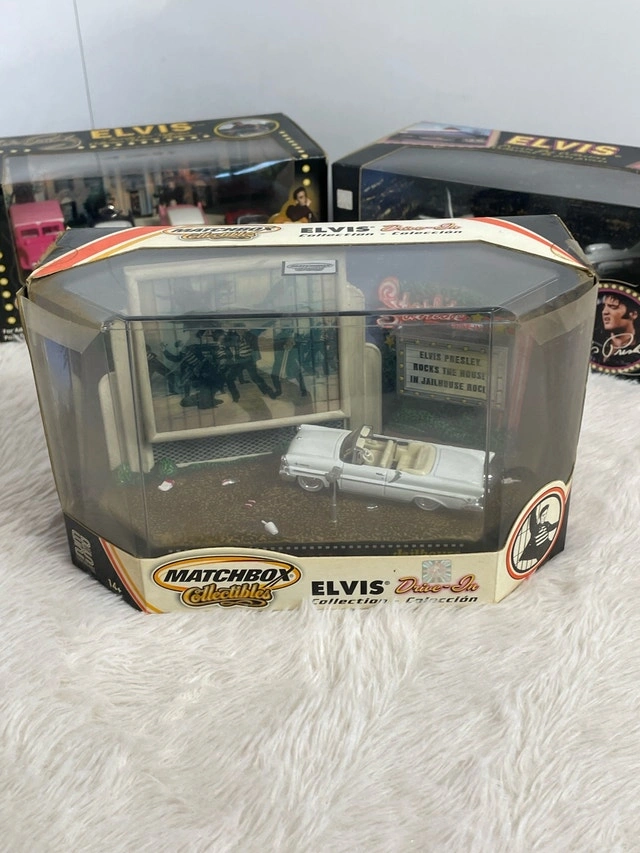 Vintage 2001 Matchbox Toy Collectables featuring Elvis Presley. Includes items like the Drive In, Favorite Car, and Private Jet. Selling as a set for $65, or individually for $25 each. Pickup available near Bayview and Davisville. Feel free to message if you have any questions!