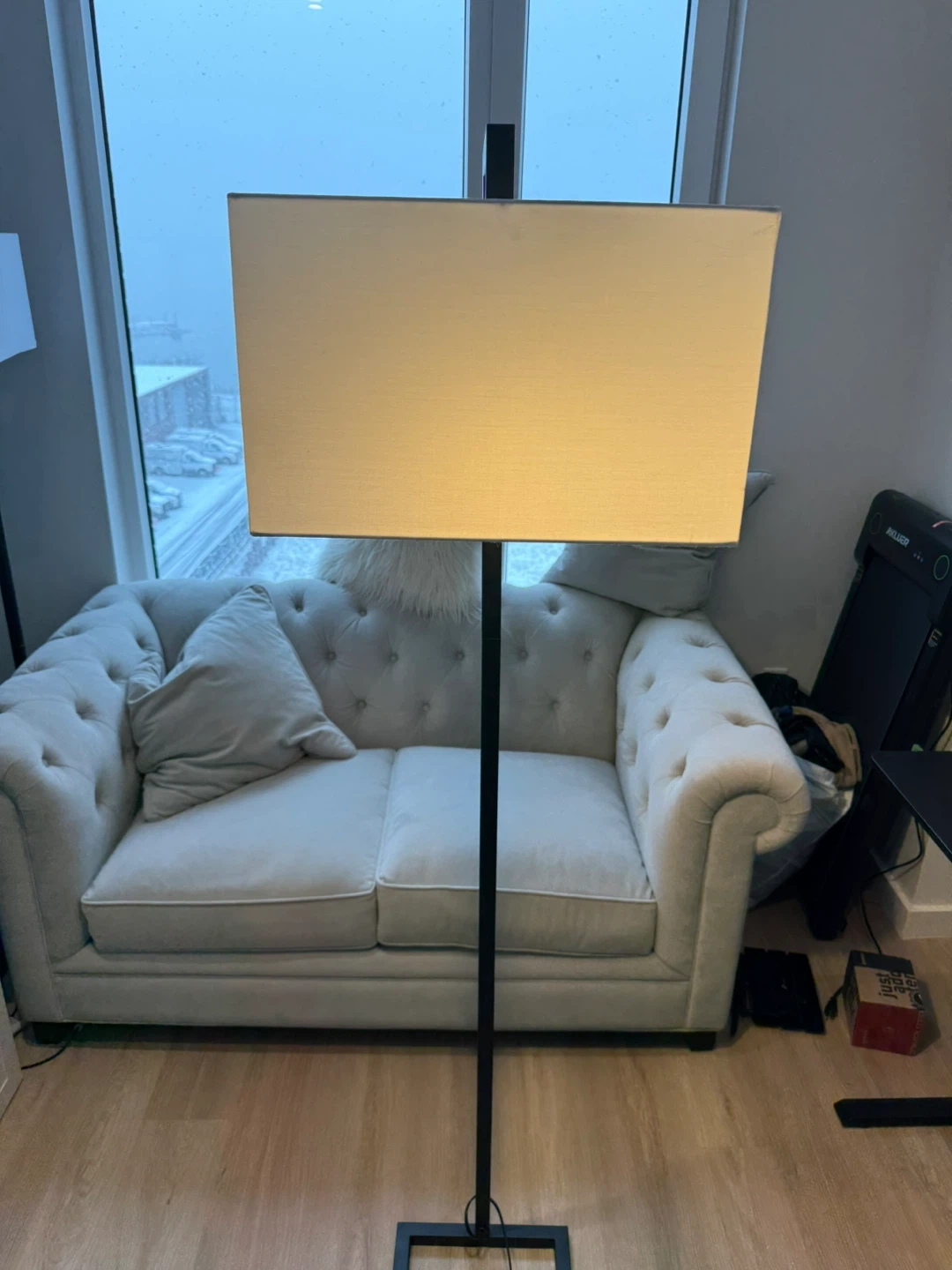 Selling arched floor lamp in very good condition. There are a few small markings on the shade but they are not super prominent.