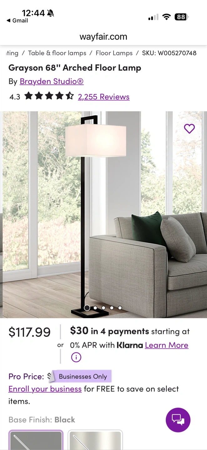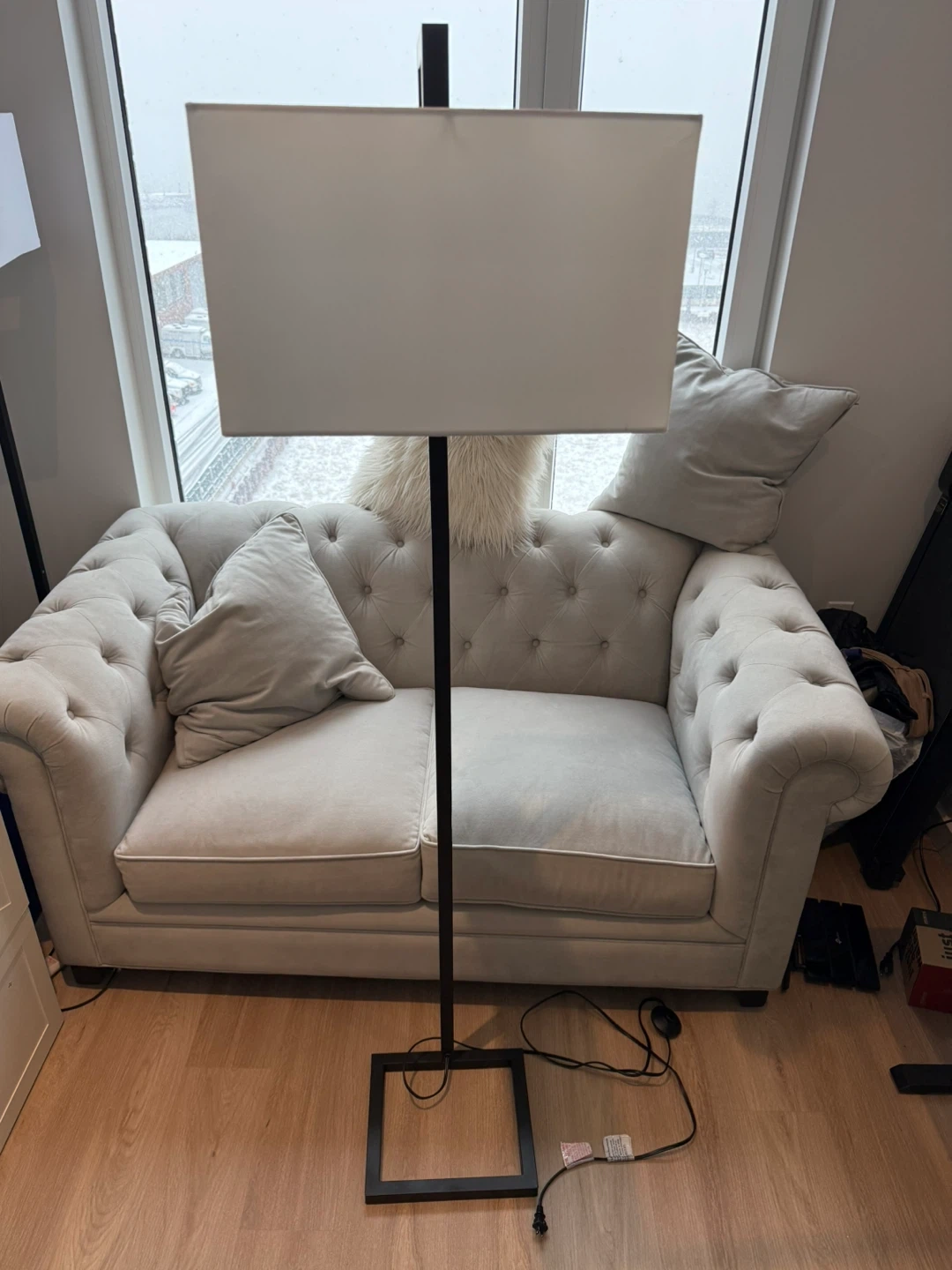 Selling arched floor lamp in very good condition. There are a few small markings on the shade but they are not super prominent.