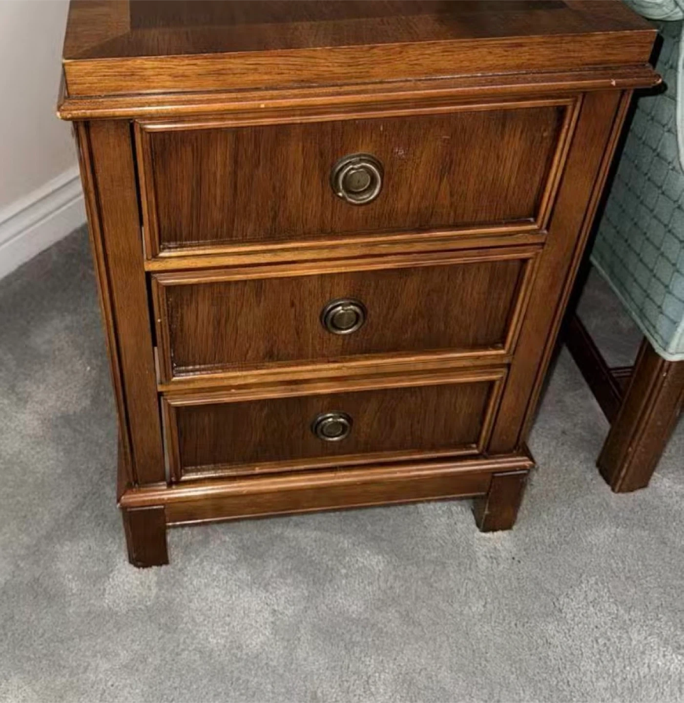 Buy & SellWood 3-Drawer NightstandWood 3-Drawer Nightstand$60Selling a lovely wood nightstand with three drawers. It's in great shape and ready to add some charm to your bedroom!WHERE TO MEETRichmond HillView MapSELLERMahshidHeaddon Gate23223 reviews1 chats·4 favorites·56 viewsSEND CHAT TO SELLERHi Mahshid! I’m interested in your listing.Hi Mahshid! I’m interested in your listing.Get the Karrot app to chatSign In to chat