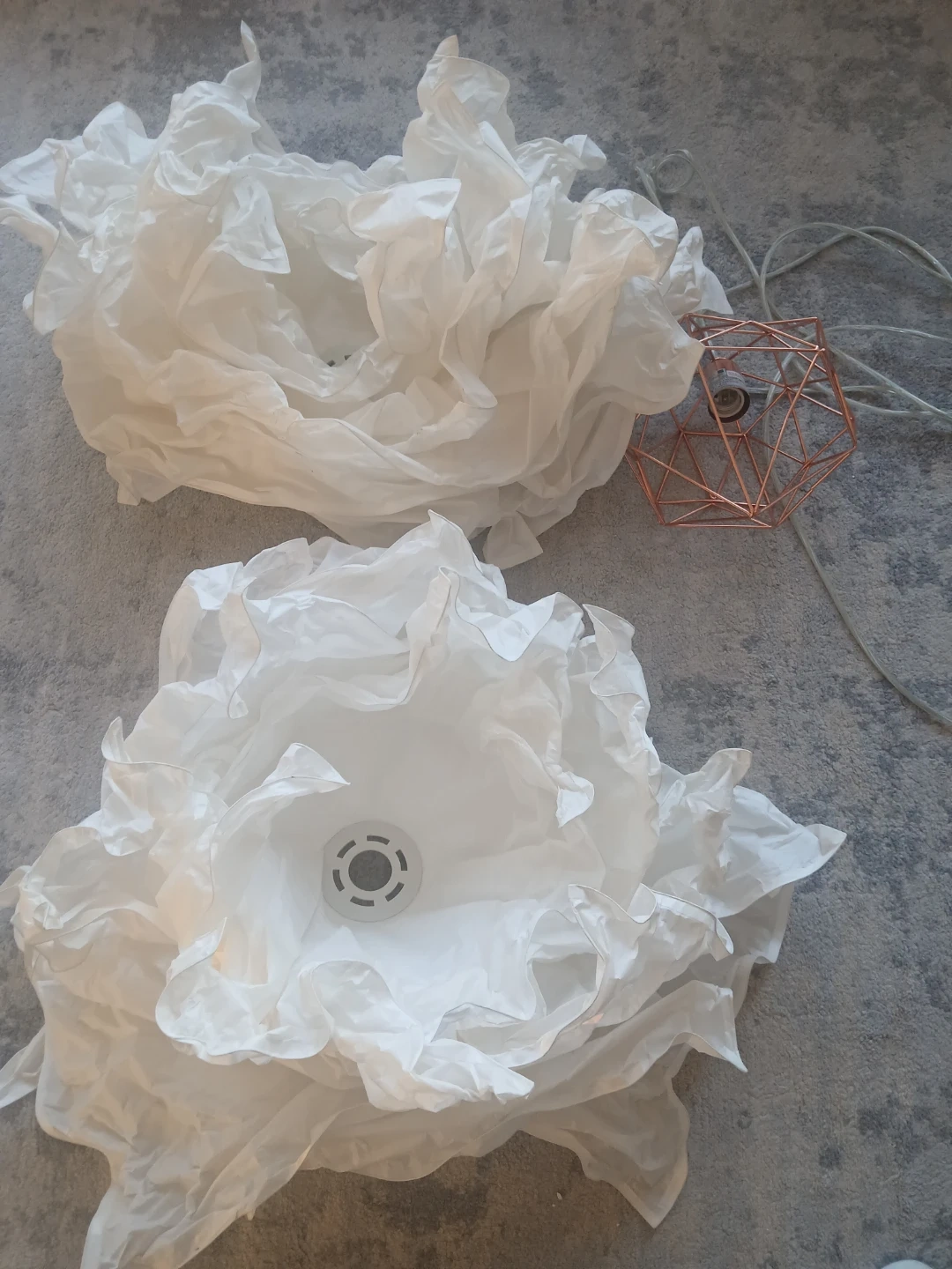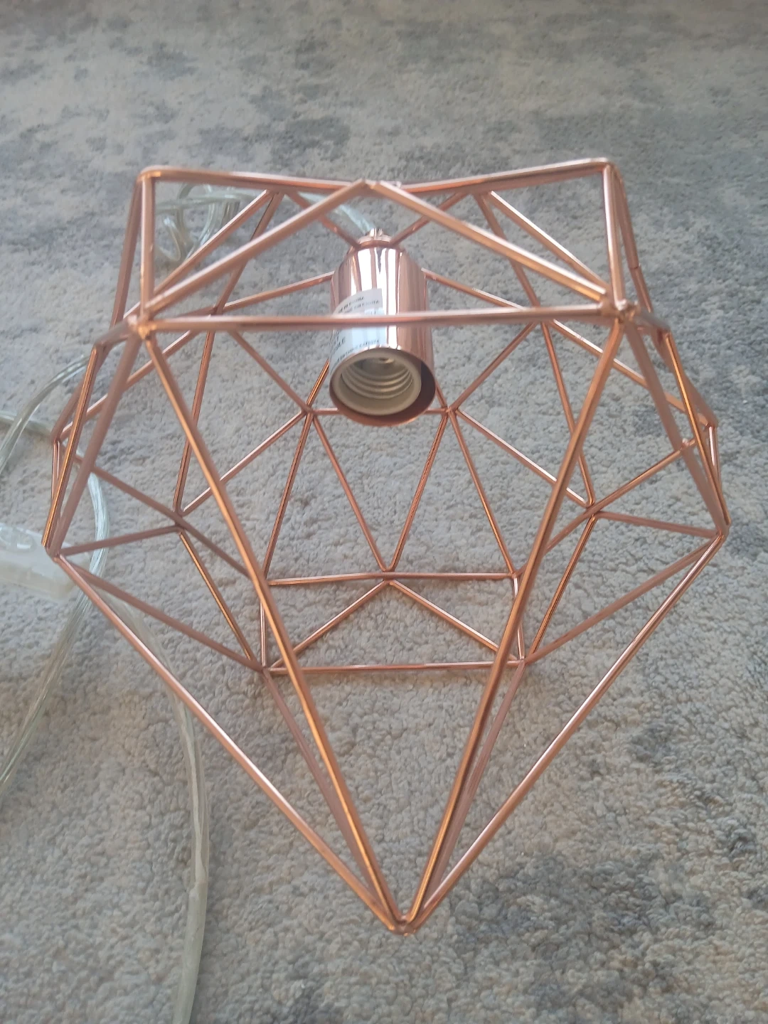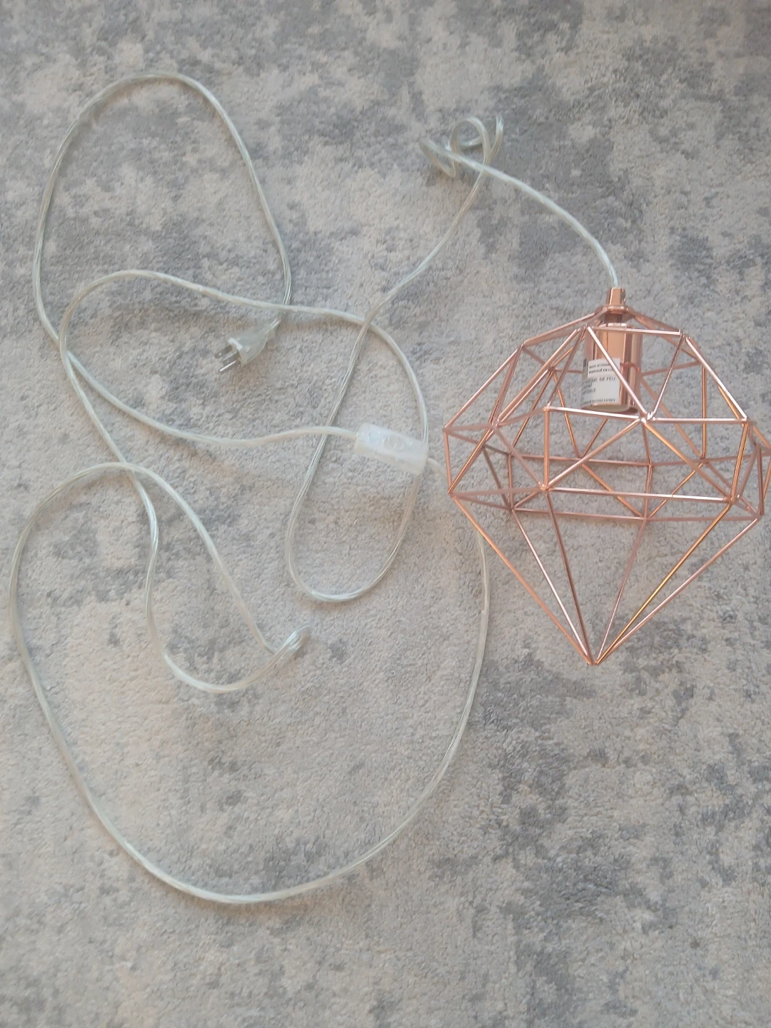 Selling a stylish double paper lampshade ( Ikea KRUSNING) and a geometric pendant light with a rose gold frame. The KRUSNING shade is discontinued in Canada. It's has a wall plug in feature with on/off switch. It's fully functional. Looks very modern and stylish ( see photo of it hanging and lit in 3rd photo). It has a really nice soft glow. I am changing it to another lamp shade, so getting rid of this one.