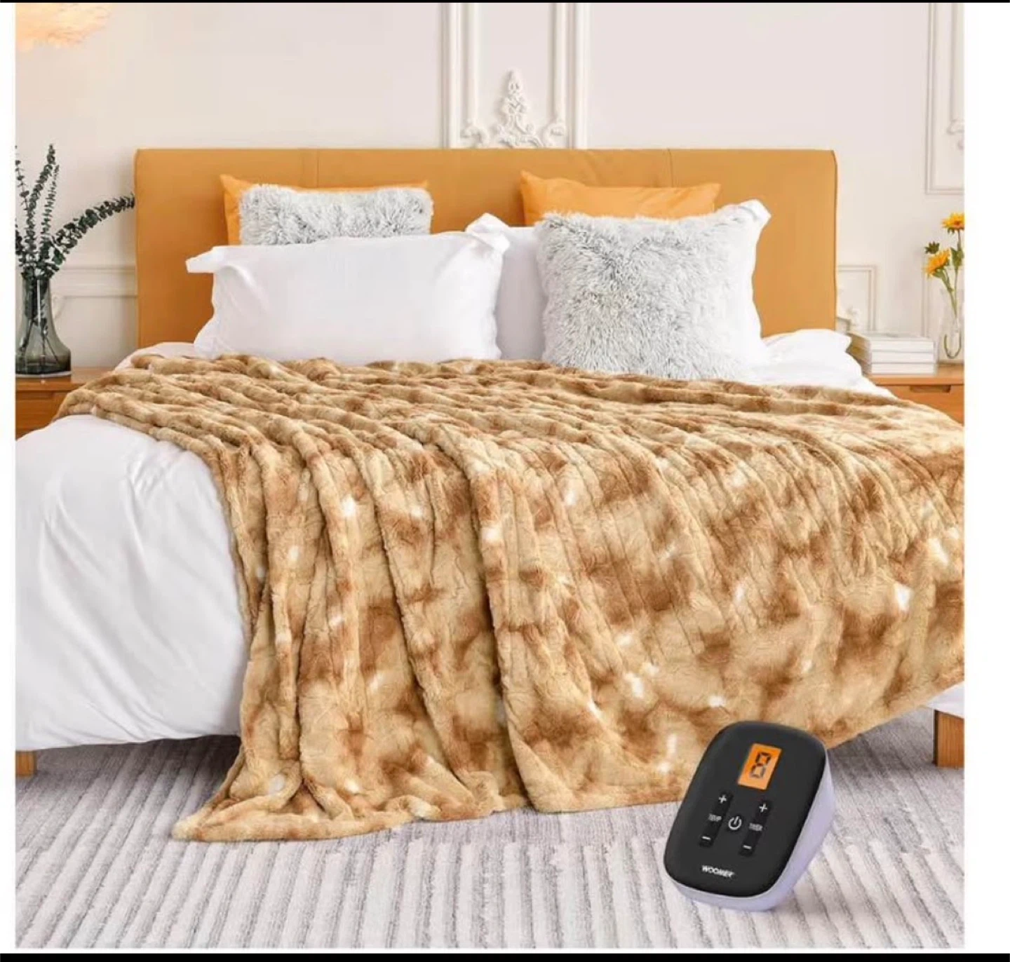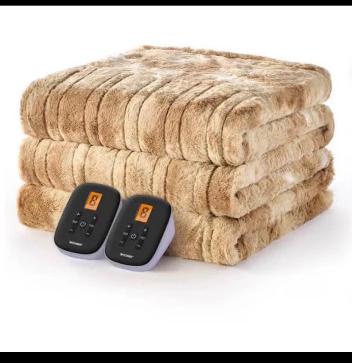Stay cozy with this WOOMER heated blanket! It's a twin size (62" x 84") and features a beige double-sided faux fur. It has 10 heat settings, an electric blanket with 0.5-12 hours timer, and over-heat protection. It's also machine washable! Originally bought for $99.99