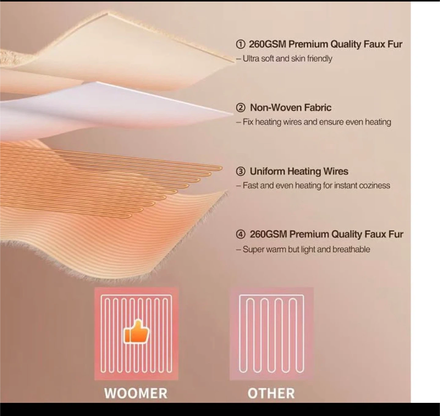 WOOMER Heated Blanket - Twin Size, Beige
