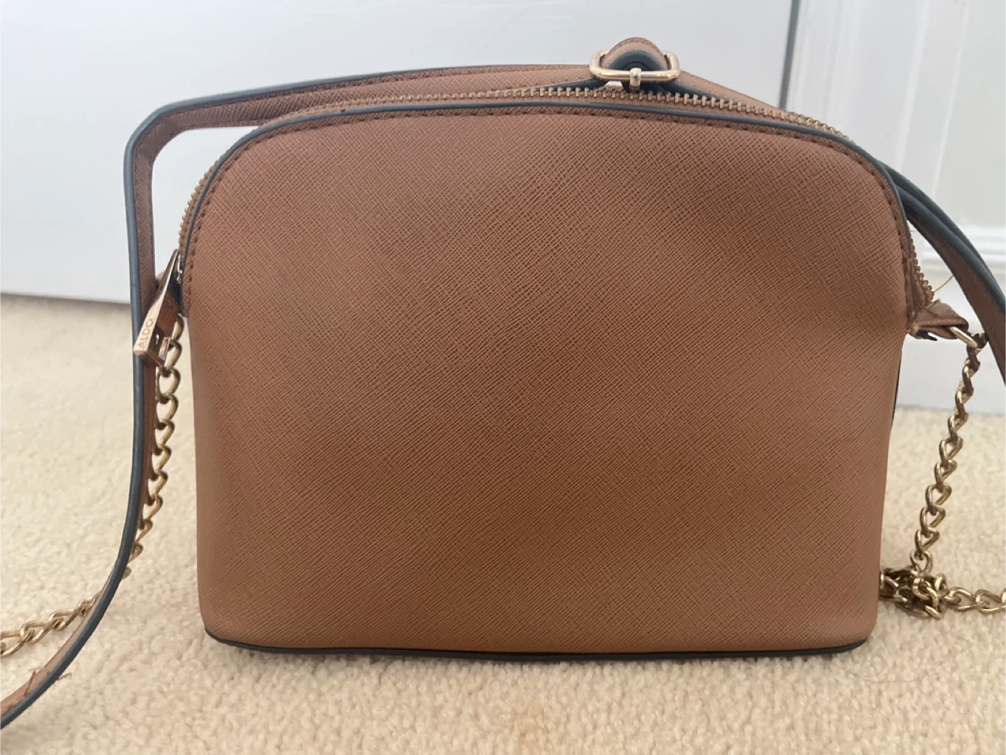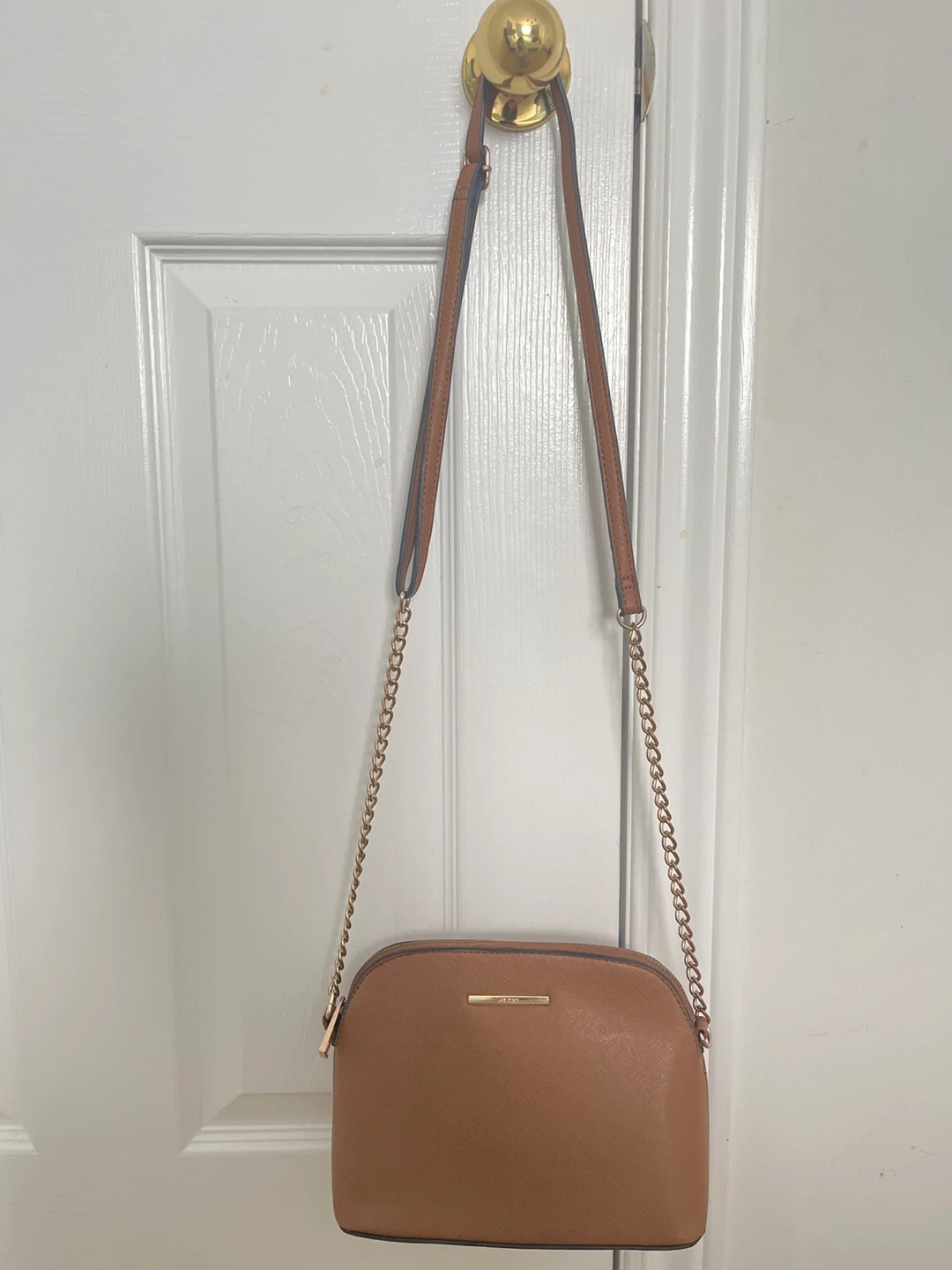 Here's a cute brown crossbody bag from Aldo! It's in great condition and has a gold chain strap. Perfect for everyday use or a night out.