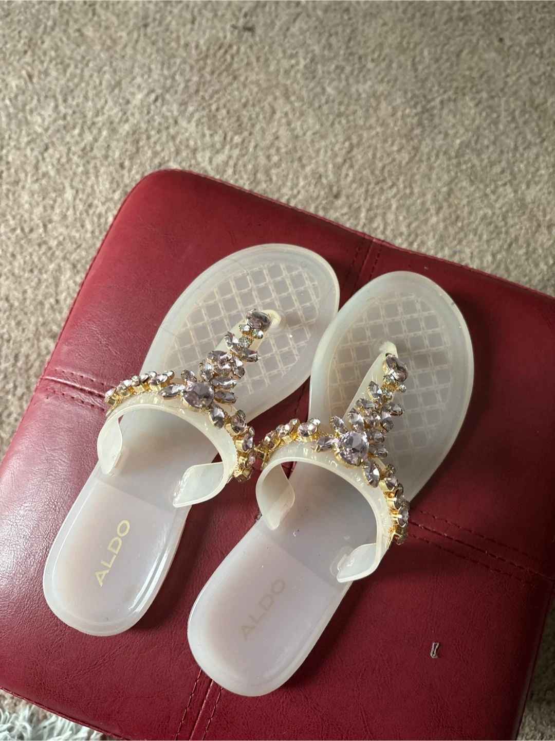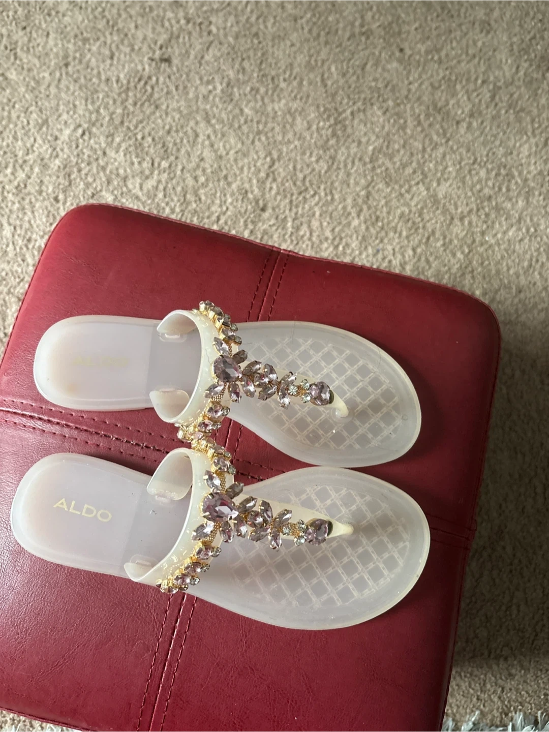 These Aldo flip flops are a fun and stylish addition to any summer wardrobe! They feature beautiful embellishments and are in great condition. Size 7