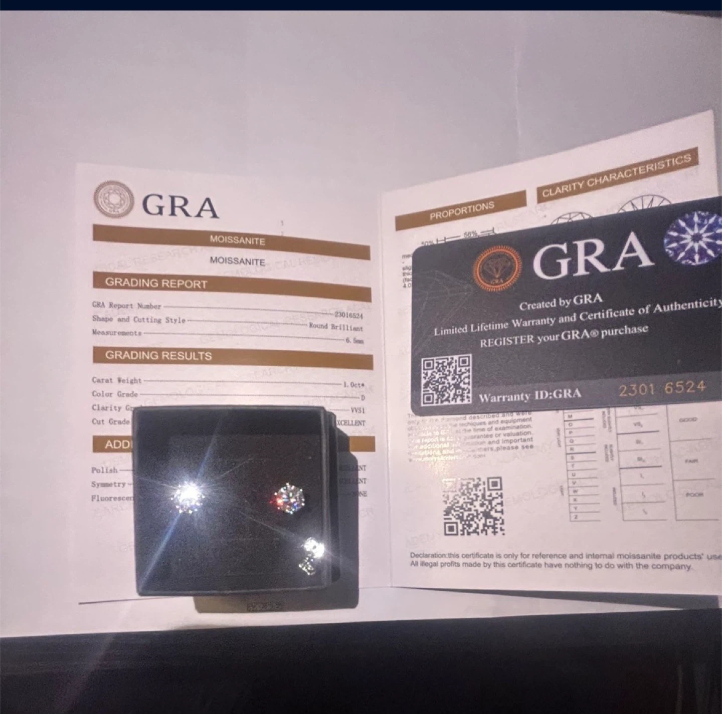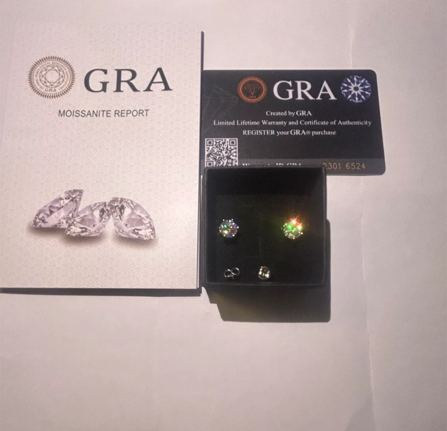 GRA moissanite stud earrings in excellent condition! These round brilliant cut earrings are 1.06ct each and 6.5mm in size. Comes with a GRA report and warranty certificate, all in the original box