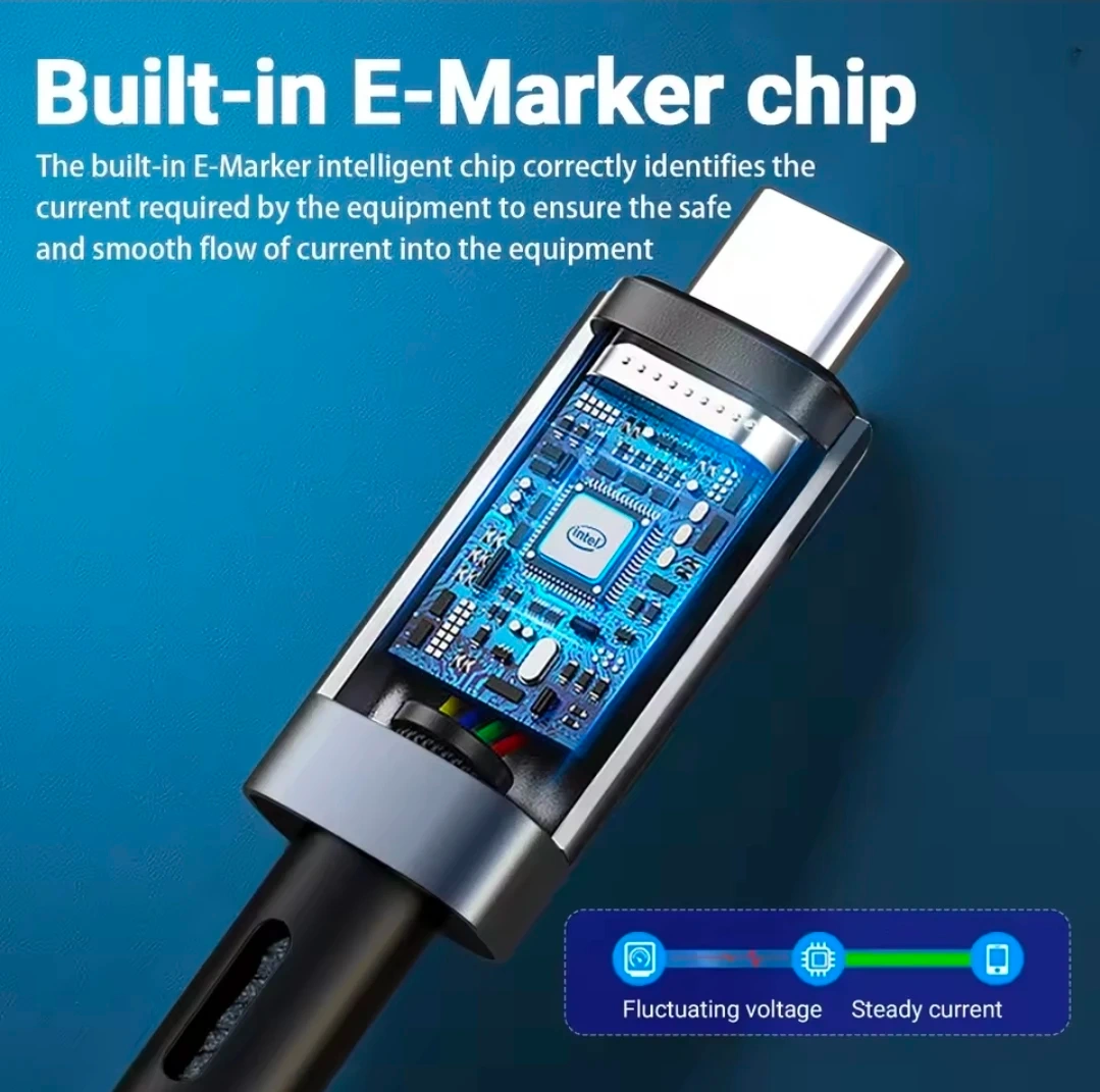 The built-in E-Marker intelligent chip correctly identifies the current required by the equipment to ensure the safe and smooth flow of current into the equipment