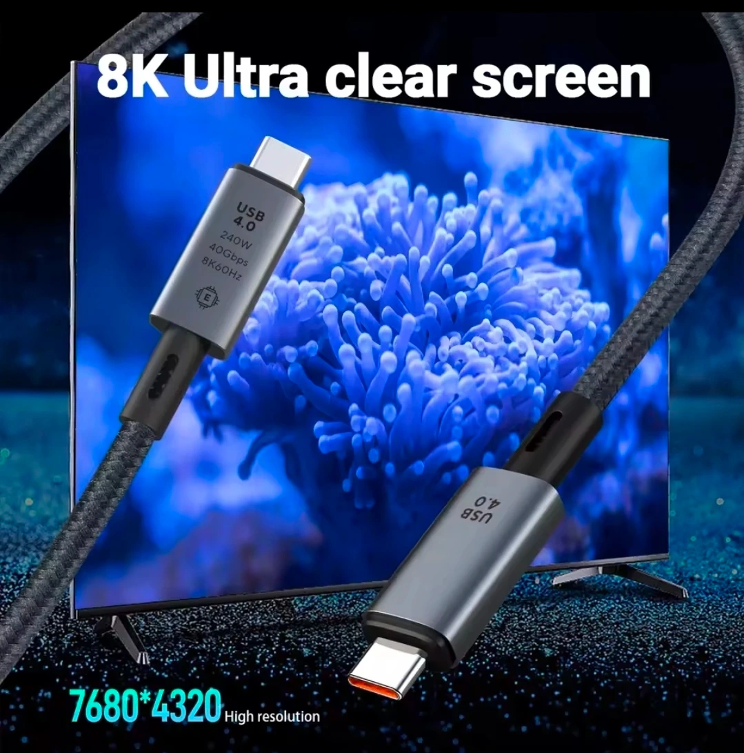 Thunderbolt 4 USB 4 Cable Fast Charging Data 240W 8K@60Hz 40Gbps