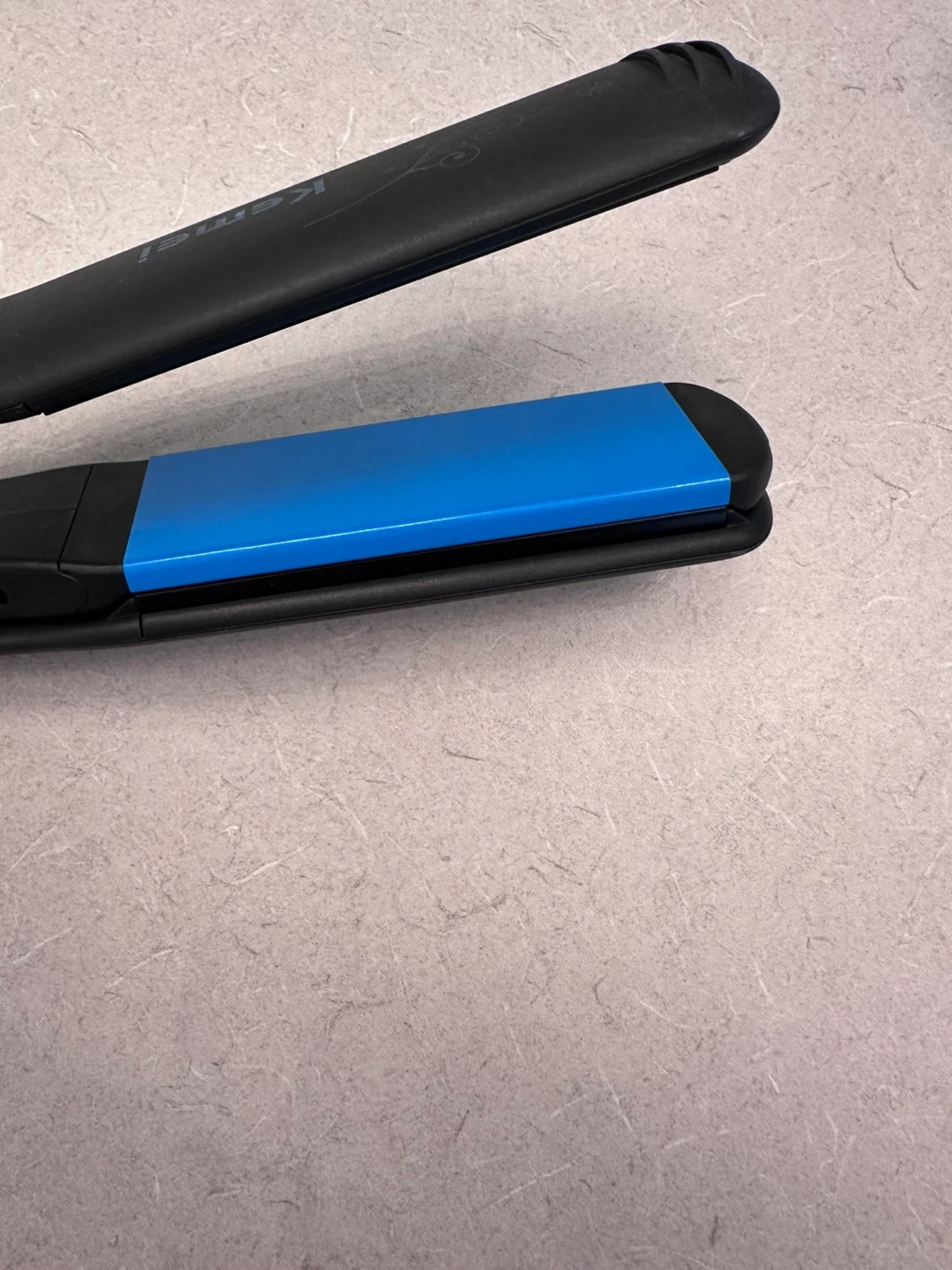Selling a Kemei hair crimper in black and blue! It has adjustable temperature settings, ranging from 140 to 220 degrees. Perfect for creating textured hairstyles