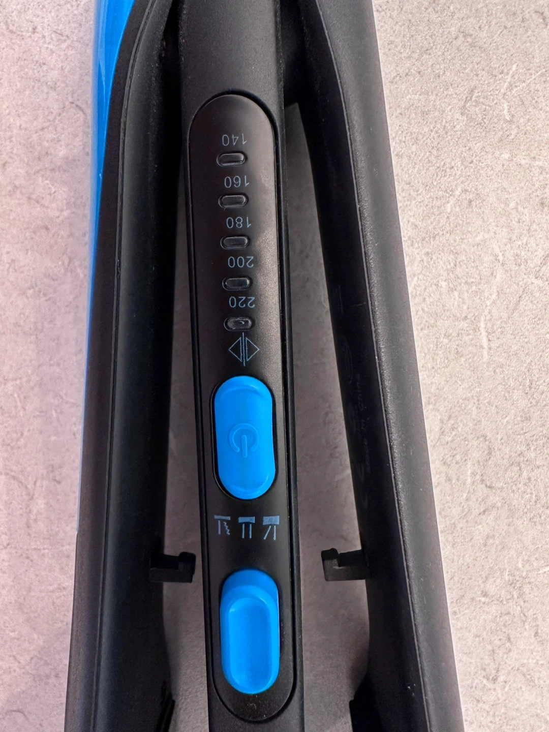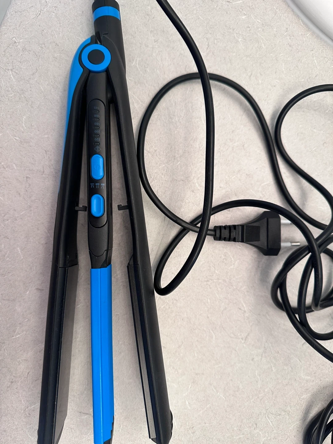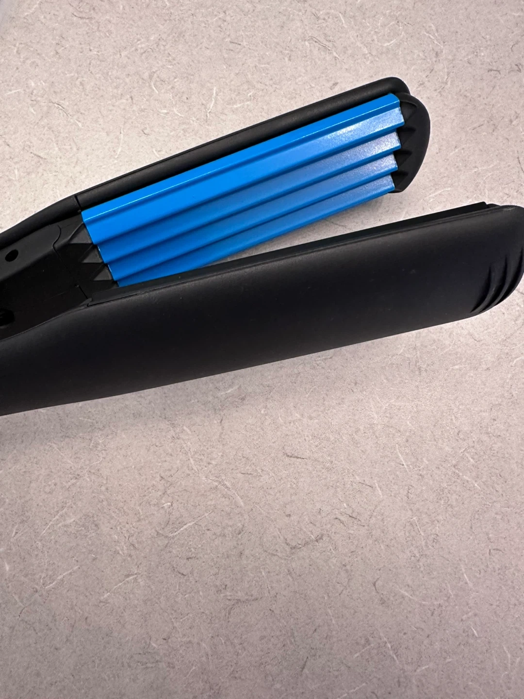 Selling a Kemei hair crimper in black and blue! It has adjustable temperature settings, ranging from 140 to 220 degrees. Perfect for creating textured hairstyles