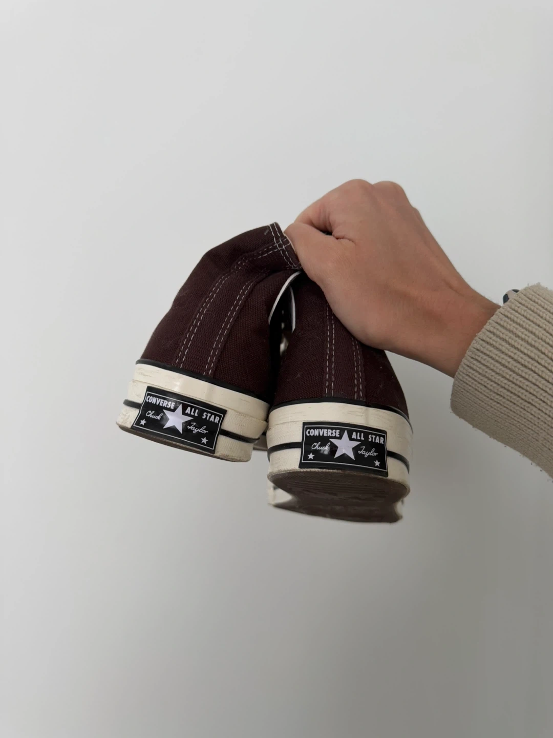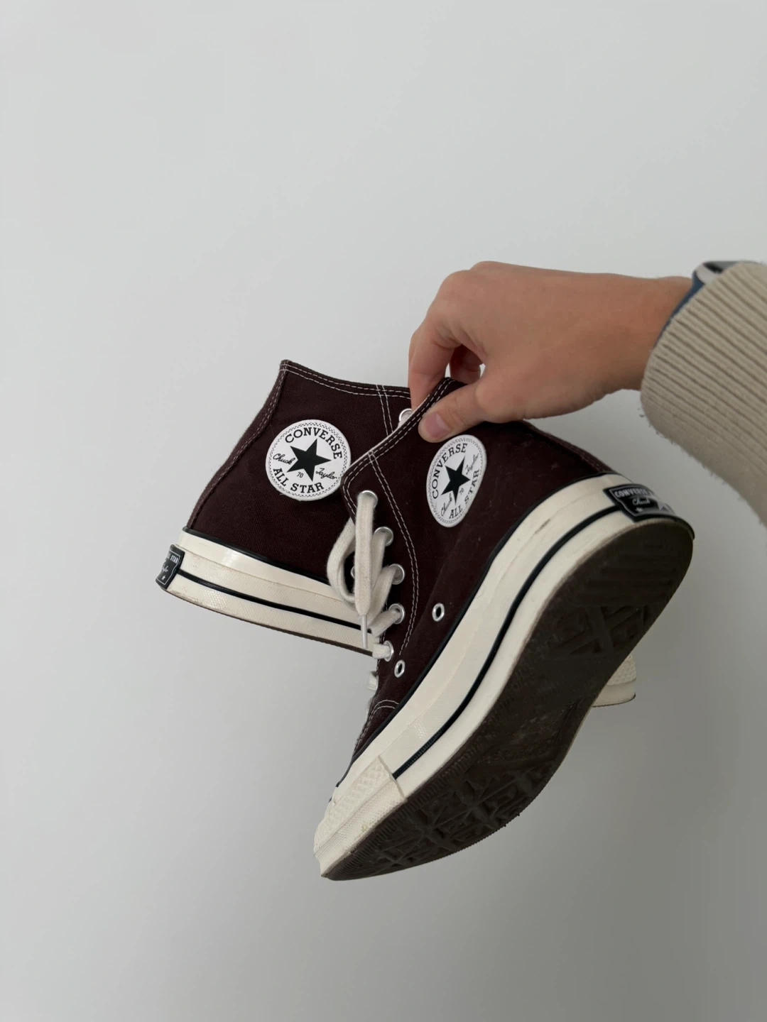 Selling a pair of Converse Chuck Taylor All Star high tops in a nice brown colour! They're in great shape and ready for a new home. Classic style that goes with anything!