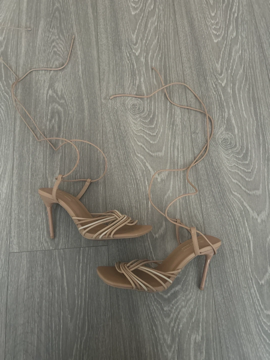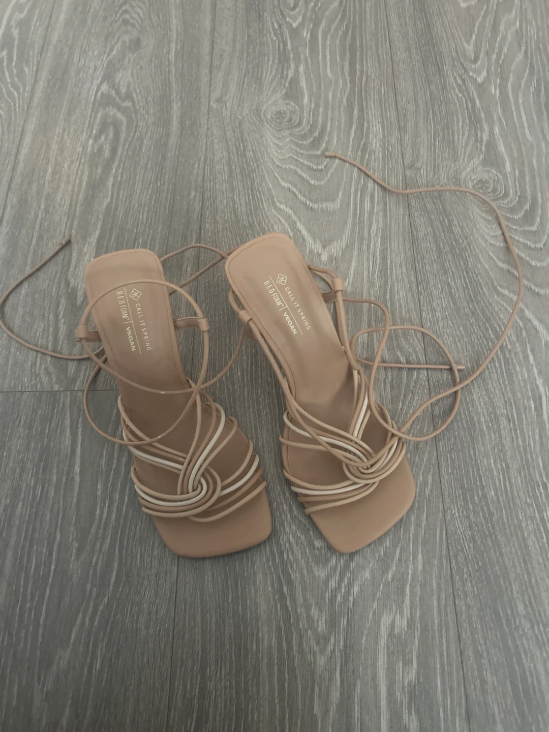 These Call It Spring heels are a size 7. They are a nude colour with a tie-up design. Perfect for a night out!