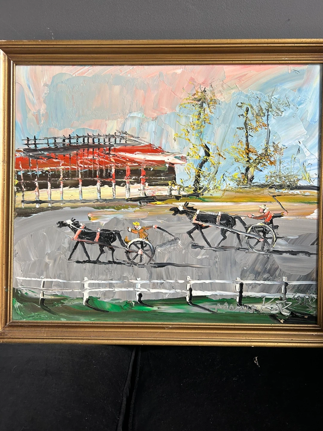 Original Morris Katz Oil Painting - Horse Racing Scene